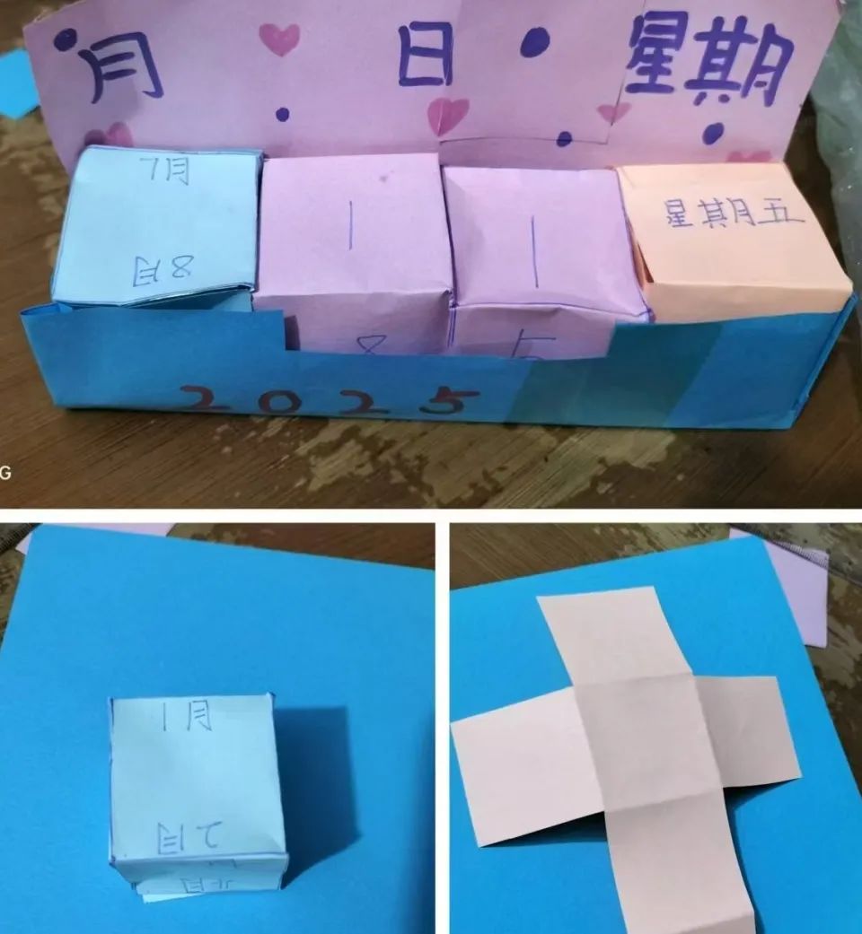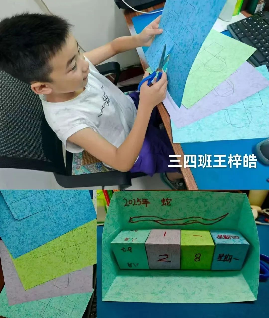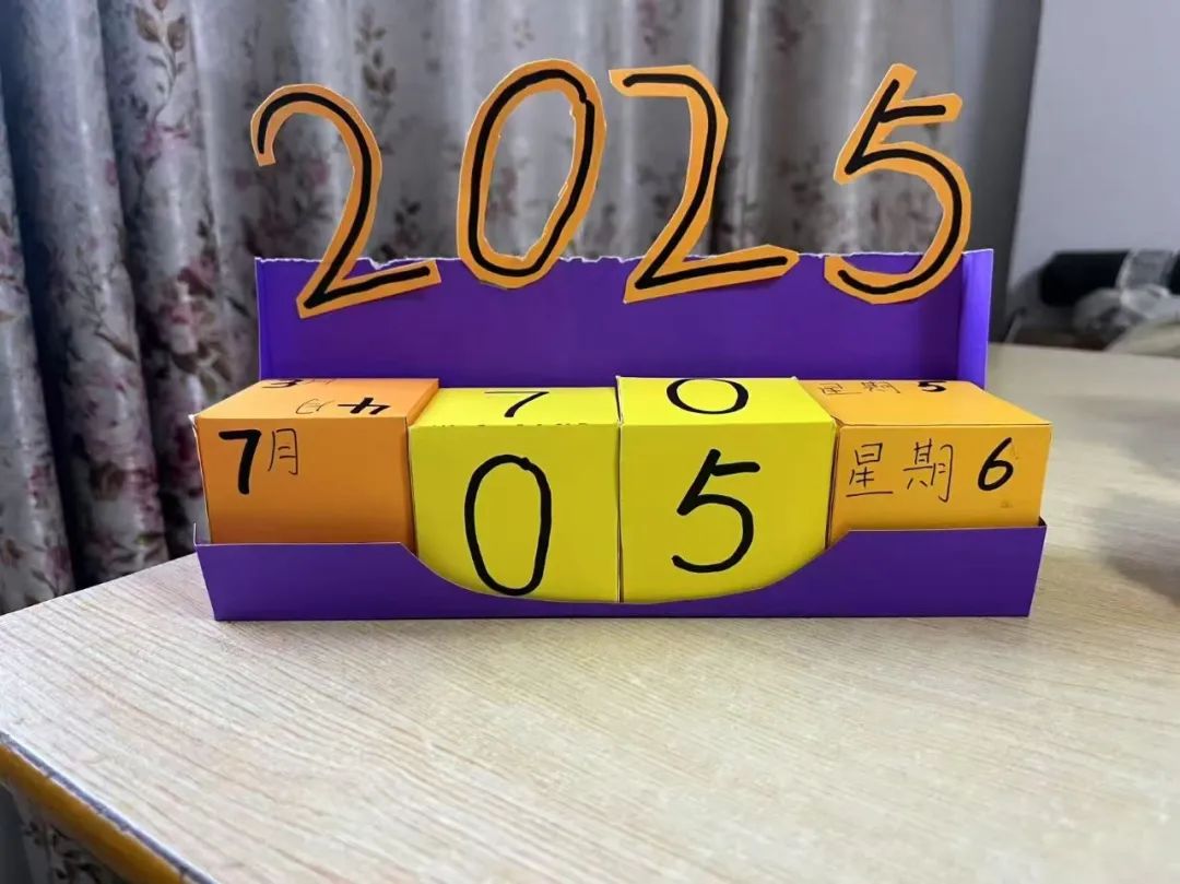 孩子们在制作日历中,亲手将年、月、日的知识化为多彩作品。裁剪拼贴间,抽象的时间变得鲜活,数学与生活的联结愈发清晰——原来课本外的数学,如此有趣。