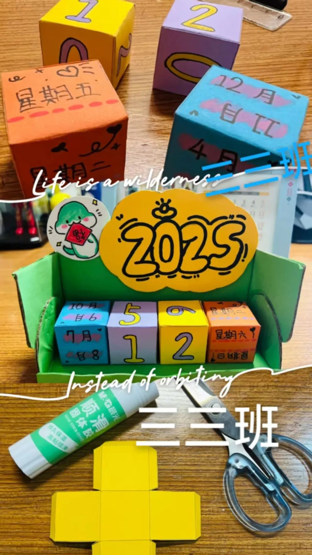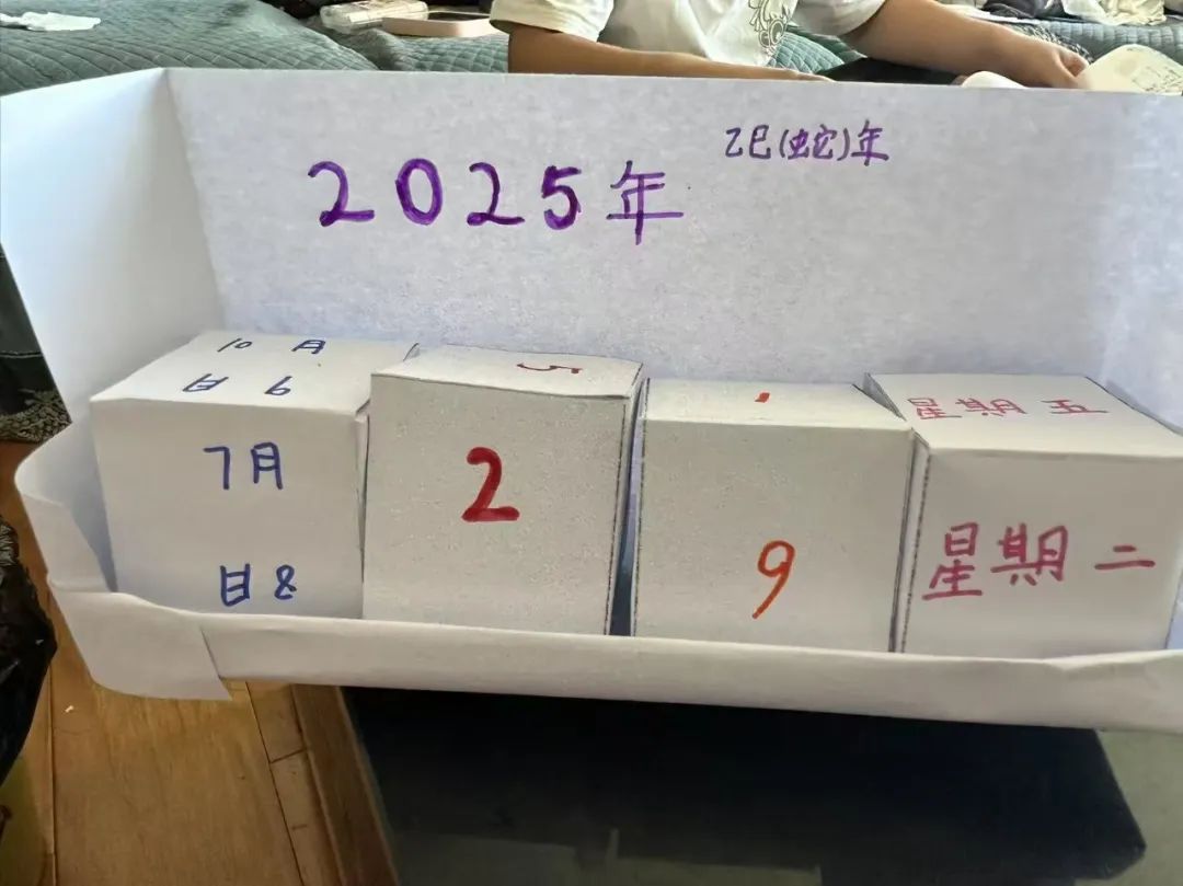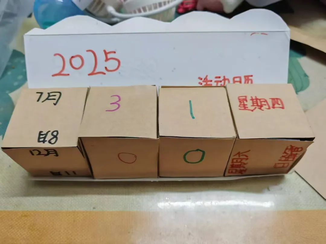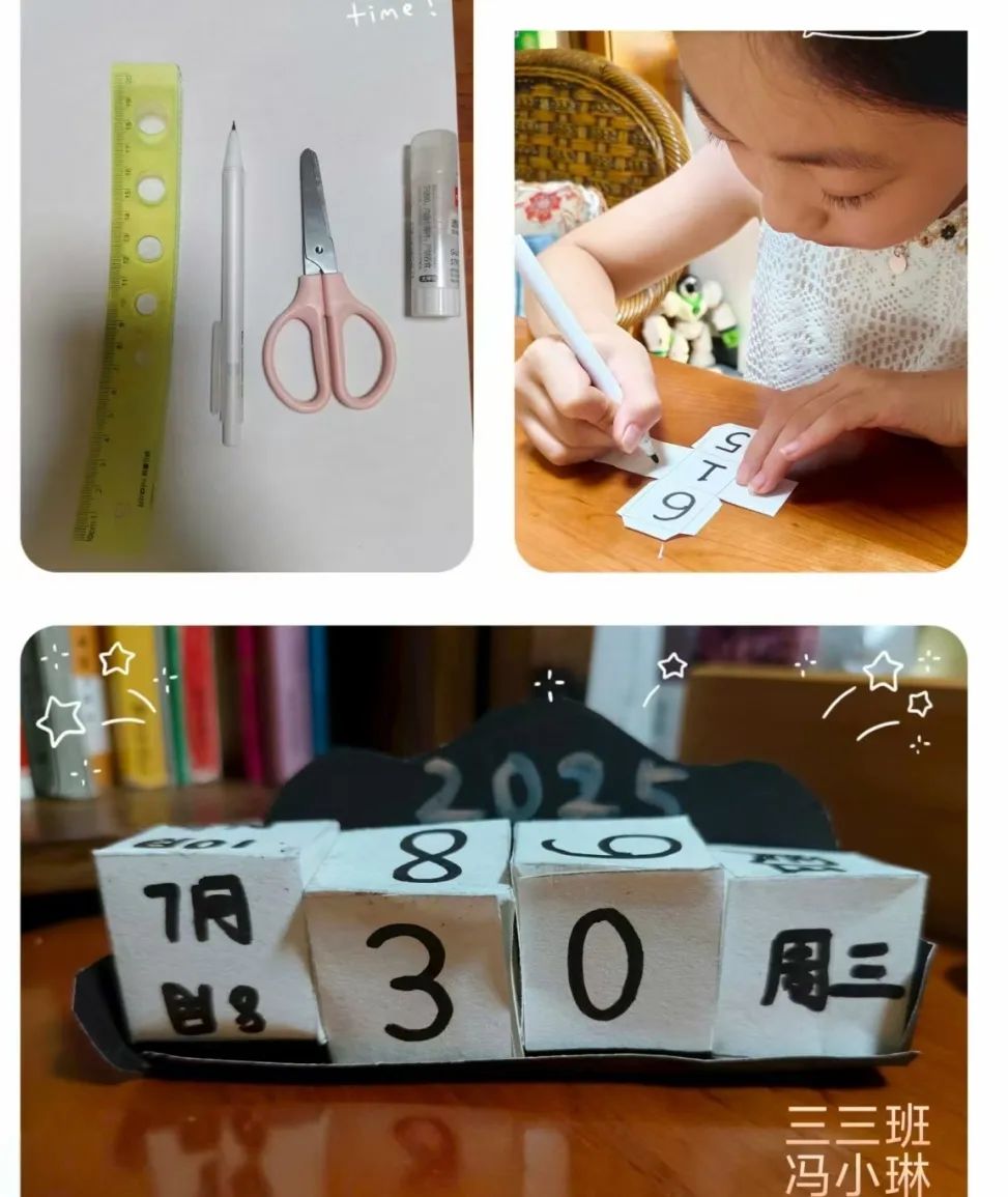 孩子们在制作日历中,亲手将年、月、日的知识化为多彩作品。裁剪拼贴间,抽象的时间变得鲜活,数学与生活的联结愈发清晰——原来课本外的数学,如此有趣。