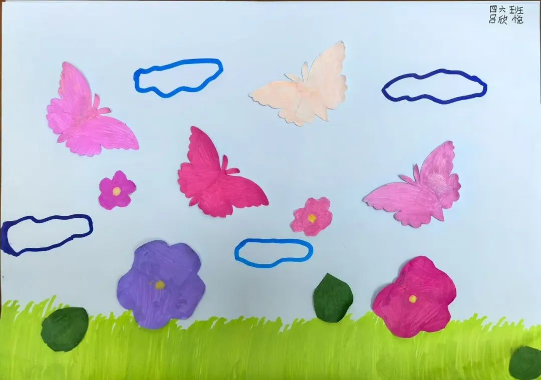 在奇妙的数学王国里,有一种神奇的图形——轴对称图形。它以独特的魅力,展现了对称的和谐之美。孩子们用灵巧的双手,以画一画、折一折、剪一剪、贴一贴的方式完成“美丽的轴对称图形”的设计和制作,拼出一幅幅创意贴画。下面来欣赏小小设计家的优秀作品吧!