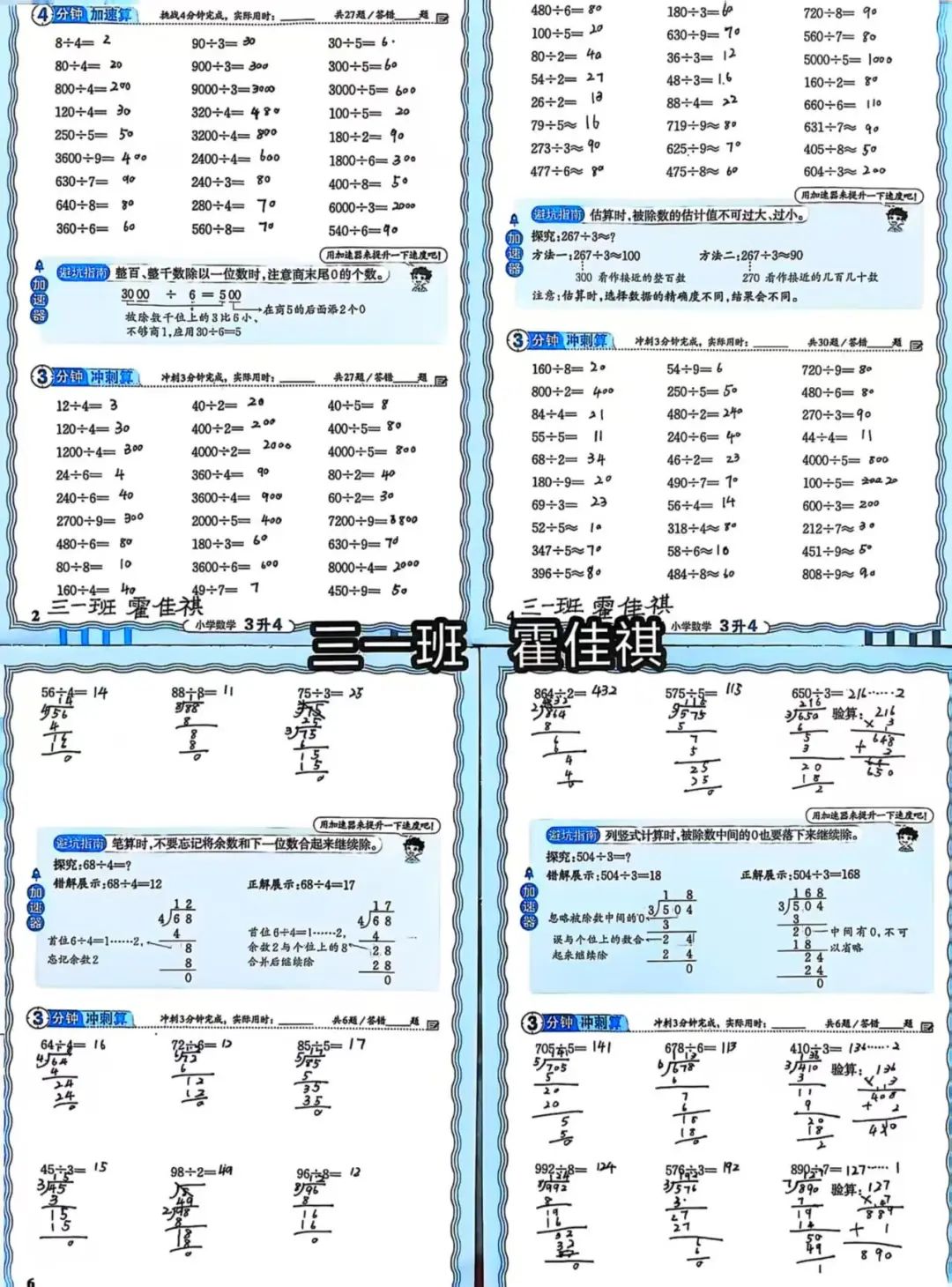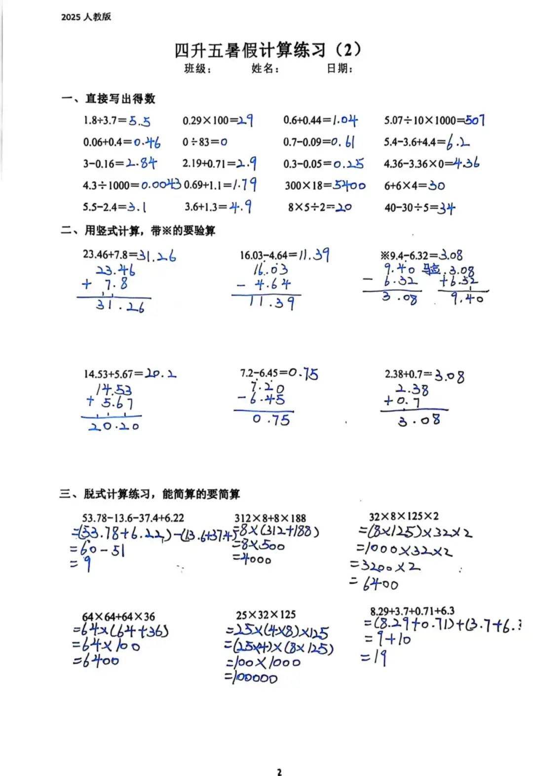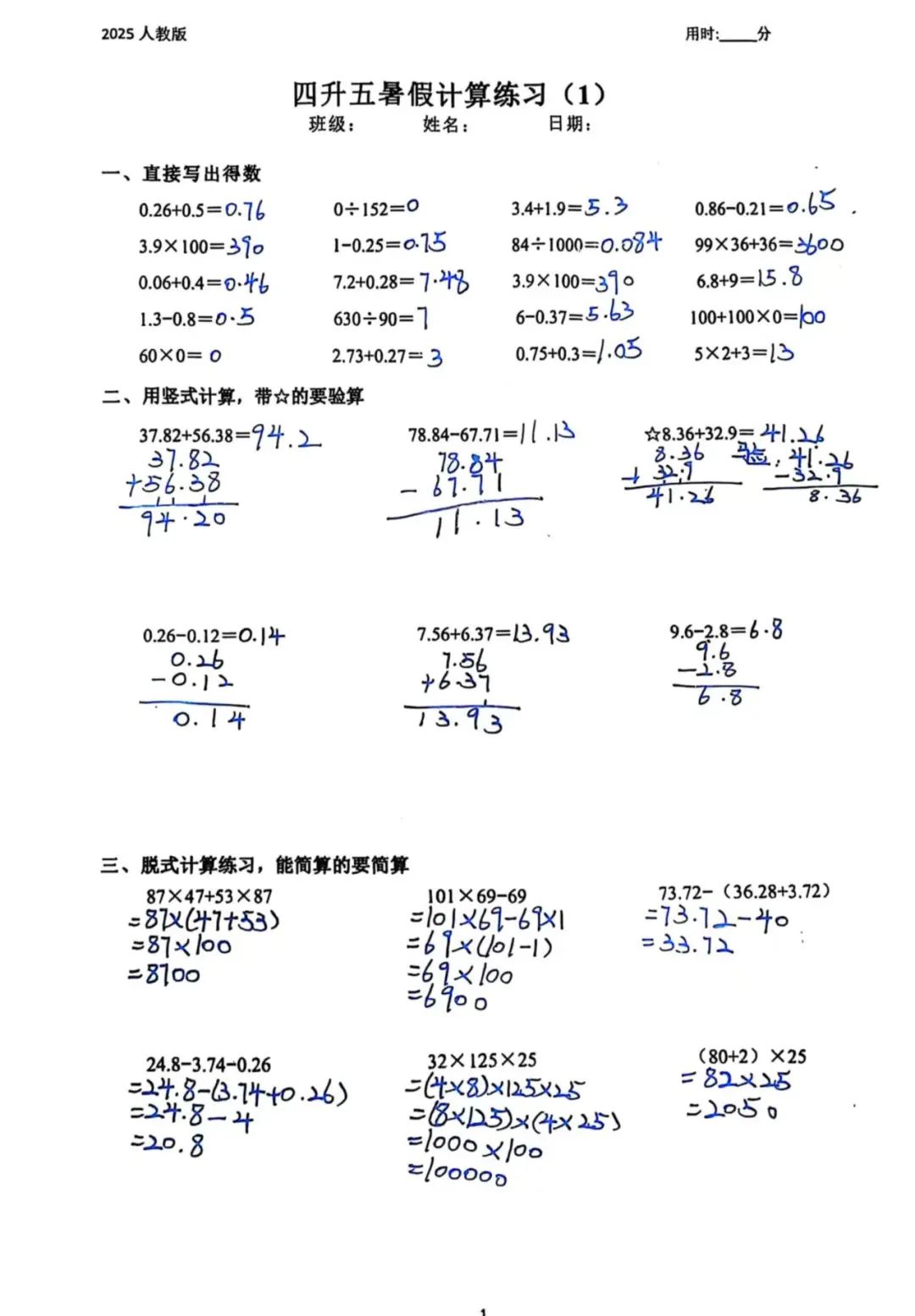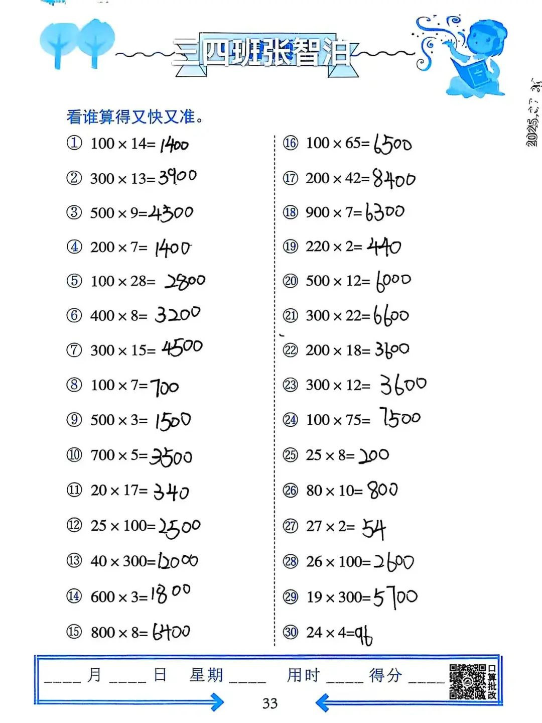 坚持的力量,藏在每一道题里!“不积跬步,无以至千里。”这个暑假,孩子们每天坚持完成计算练习,日复一日的积累,让计算从任务变成了乐趣,更让细心与耐心成为习惯。