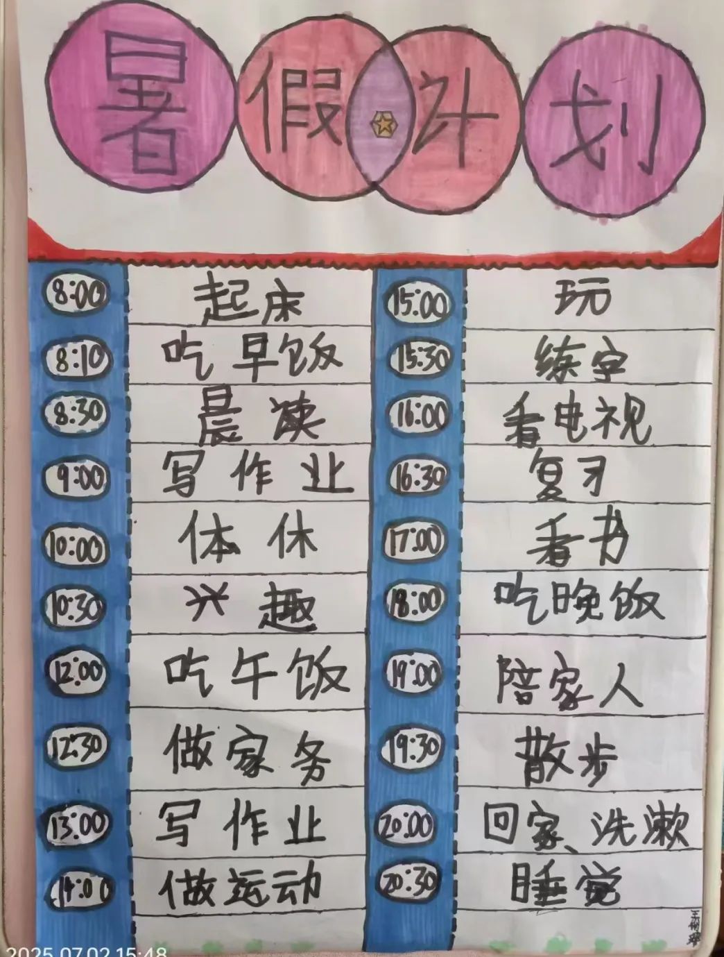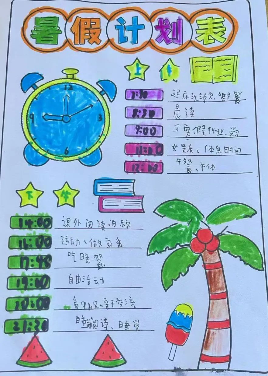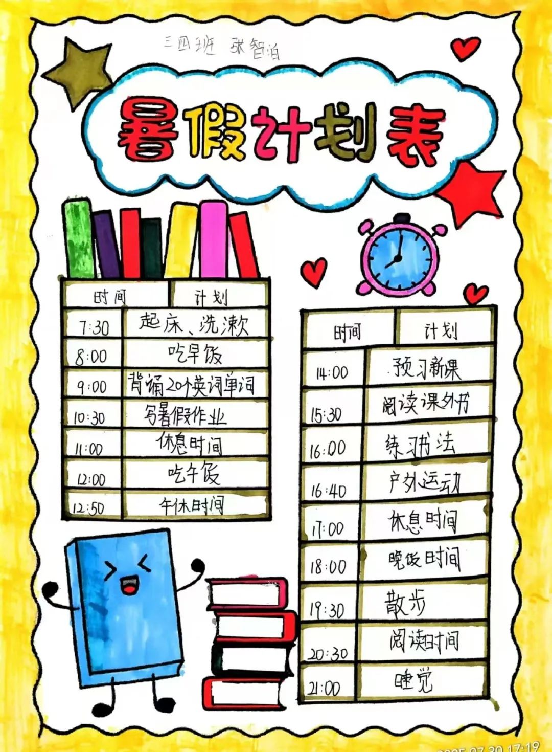 动手做份暑假计划表,让快乐与成长相伴,请欣赏专属孩子们的暑假计划表,感受他们充实而有趣的每一天吧!