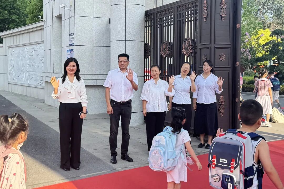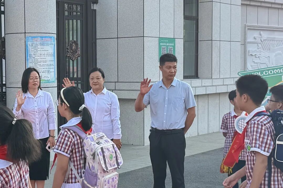 在清晨的第一缕阳光中,二十一学校校长张瑛携领导班子早早地站在了校门口,迎接每一位回归校园的学子。
