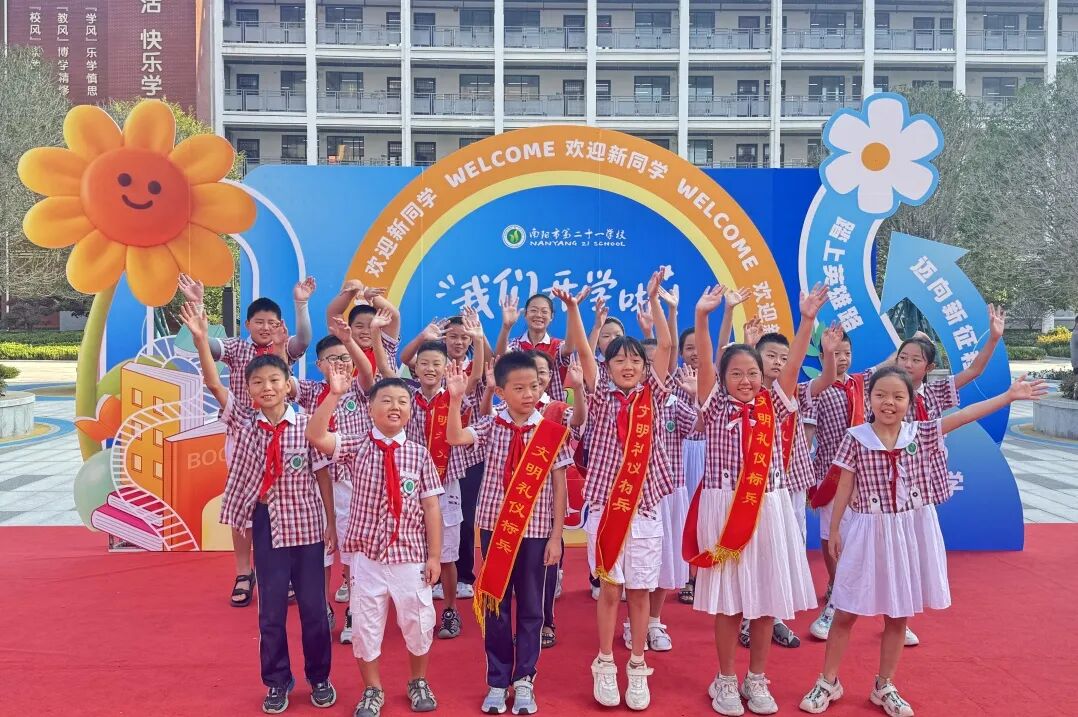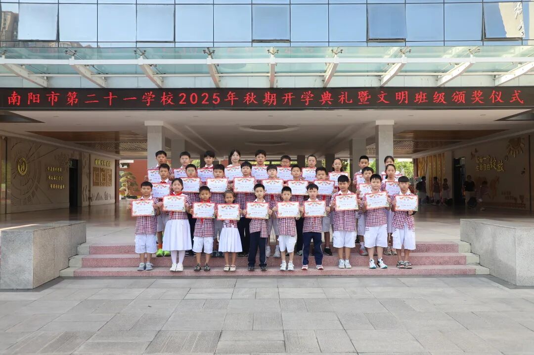 秋光盈校圃,暖语候童归。迎着灿烂的阳光,我们又一次站在崭新的起点,共同开启又一个充满希望的新学年。今秋恰逢中国人民抗日战争暨世界反法西斯战争胜利80周年,9月1日上午,南阳市第二十一学校以“以史为鉴守初心·以行致远启新程”为主题举办2025年秋季开学典礼,让这场跨越时空的历史纪念,与孩子们的开学新程深情相拥,把爱国的种子,悄悄散播在孩子们的心田。