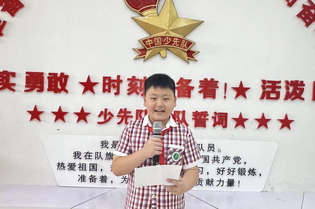 段宇栋同学作为学生代表在开学典礼发言,追忆抗战历史、致敬先辈。他呼吁同学们新学期扎实学习、勇克难关,以少年之力承报国志,争当护家国的“小英雄”。