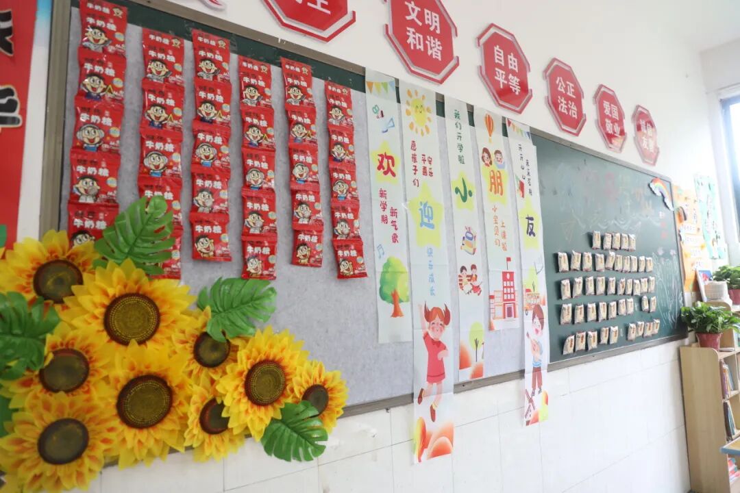 以心迎“新”,“新”意满盈。氛围拉满的主题墙,爱意融融的挂饰摆件,元气满满的标语横幅,处处彰显着用心,时时传递着期盼!