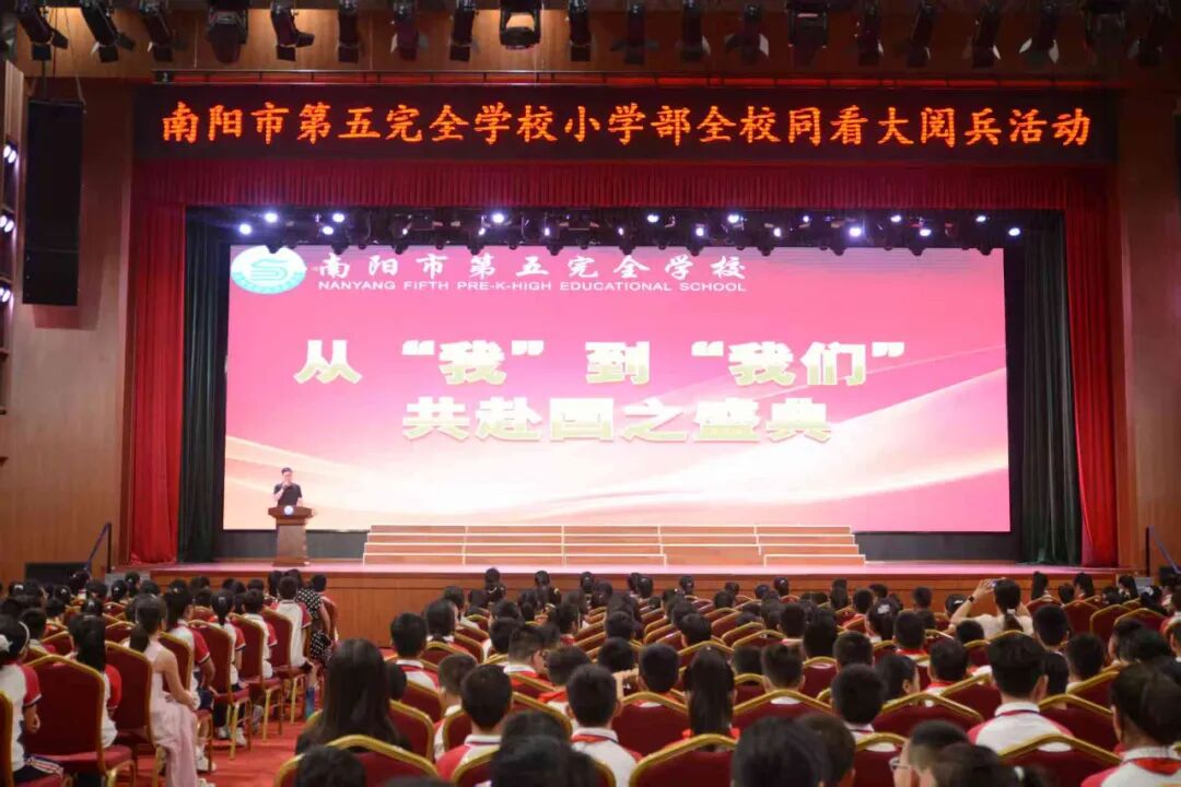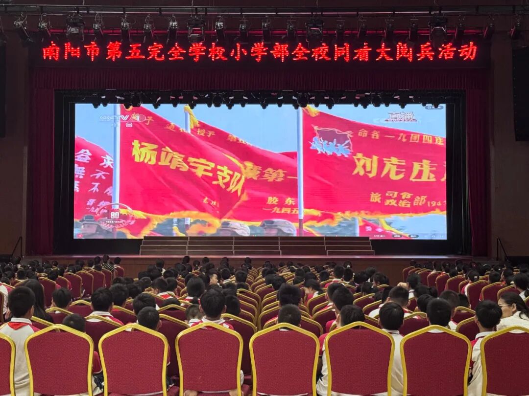 为传承红色基因,厚植爱国情怀,引导全体师生感悟国家力量,9月3日上午,南阳市第五完全学校小学部全体师生集中观看“纪念中国人民抗日战争暨世界反法西斯战争胜利80周年大会”现场直播,以一场震撼人心的“国之盛典”,为师生上了一堂生动的爱国主义教育课。