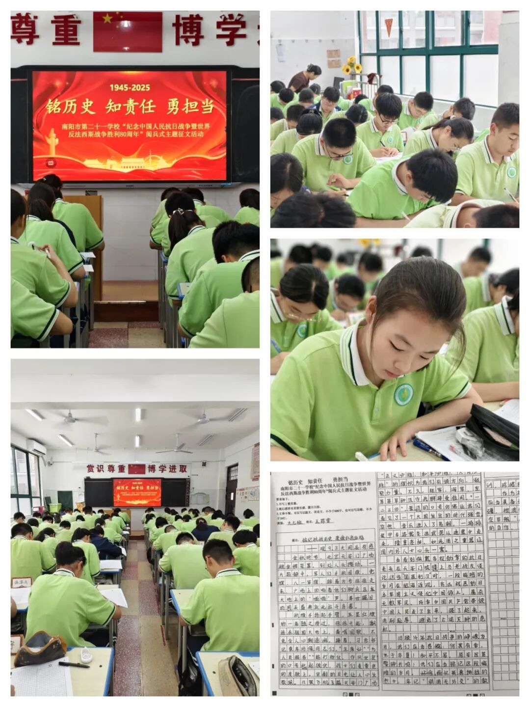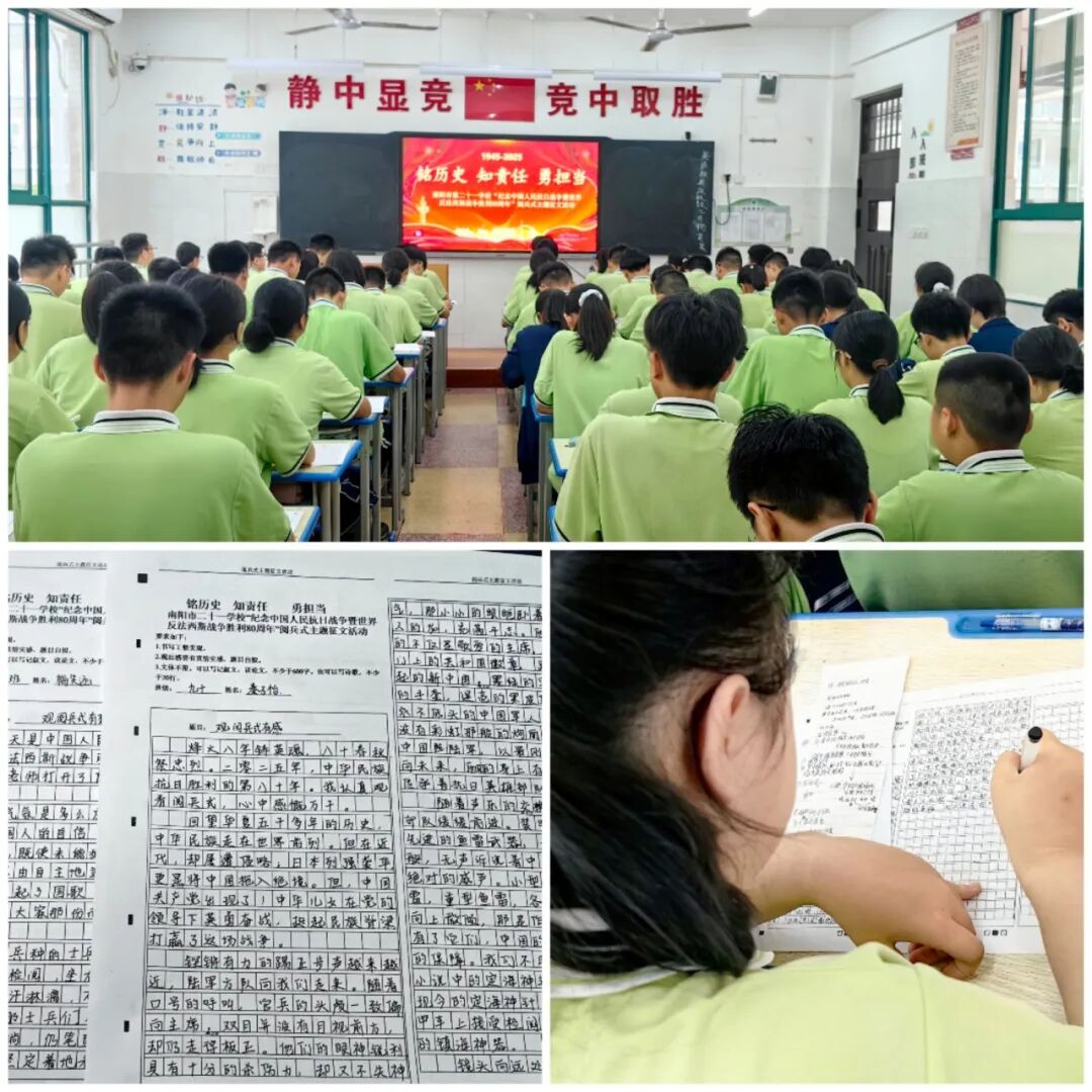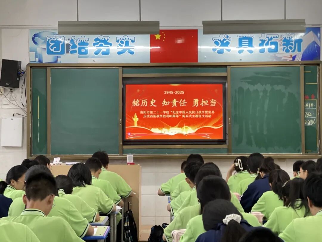 燃青春志 铸爱国魂——南阳市第二十一学校初中部举行“纪念中国人民抗日战争暨世界反法西斯战争胜利80周年”主题系列活动