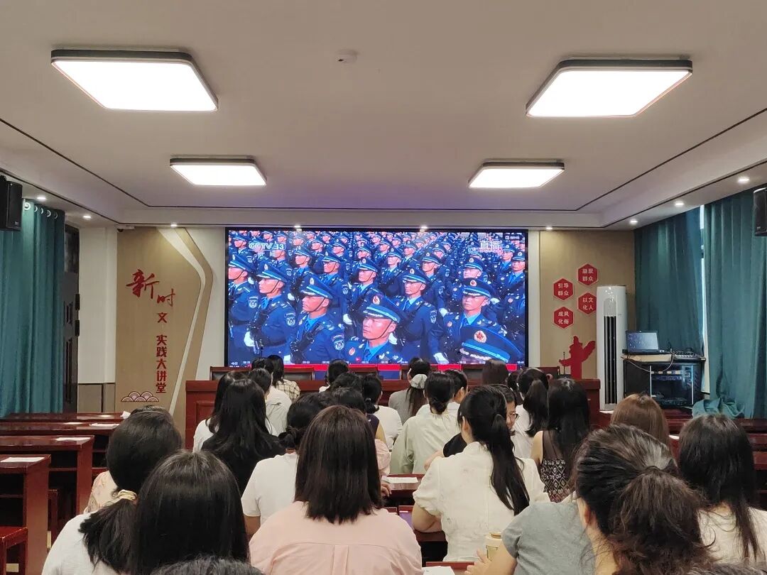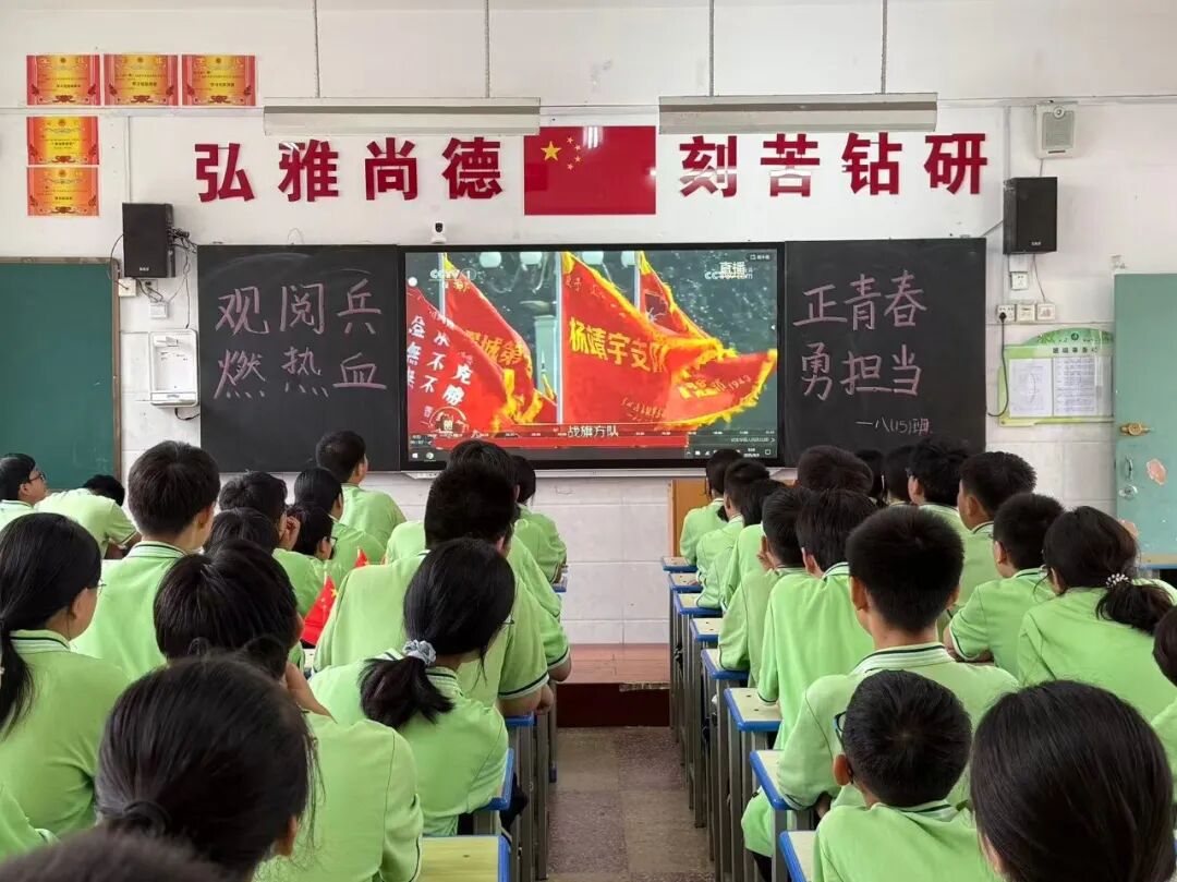 荧屏之内,长安街上铁甲列阵,雄鹰翱翔;荧屏之外,校园之中掌声雷动,热泪盈眶。师生齐聚一堂,共赏纪念抗战胜利 80 周年阅兵盛典:徒步方队步伐铿锵,踏破岁月尘埃;装备方队铁流滚滚,彰显大国底气;空中梯队鹰击长空,划破云霄之上。这一刻,民族自豪感在胸膛激荡,报国凌云志在心中升腾。