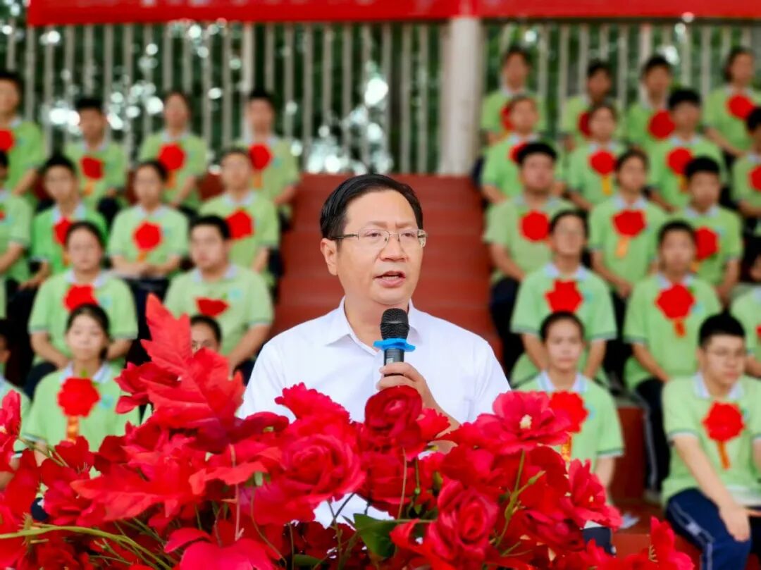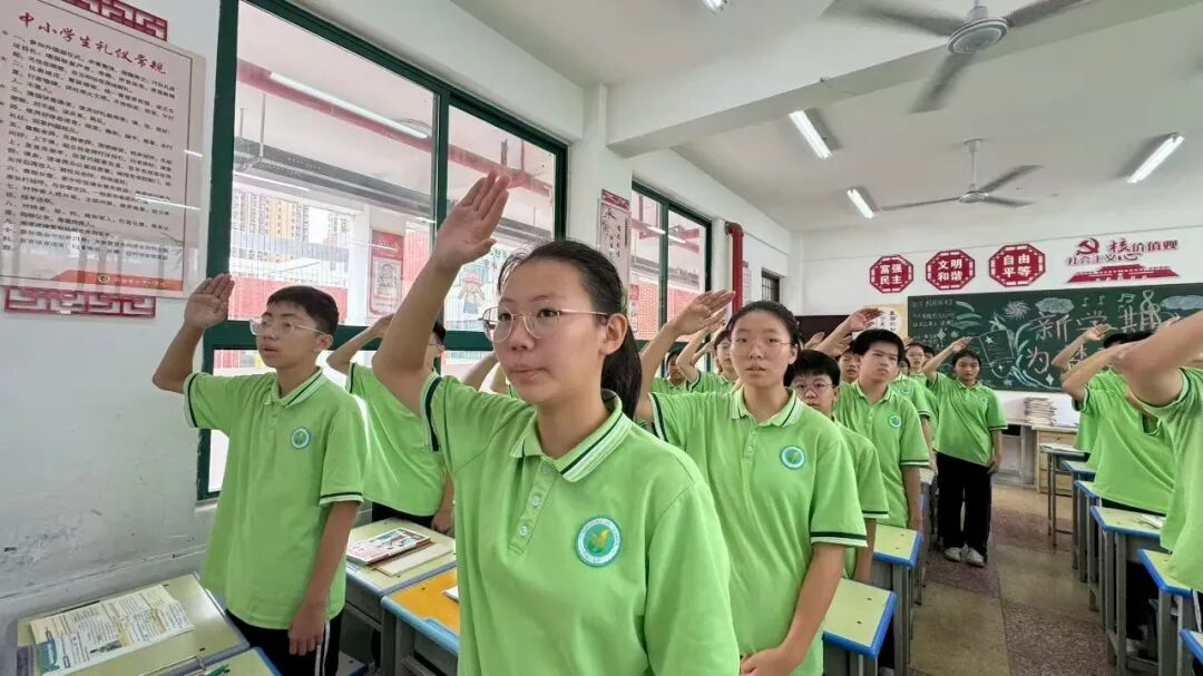 晨曦微露,清风拂岗;旌旗猎猎,国歌激昂。国旗下,师生共缅先烈;看今朝,我辈少年立誓言、承遗志,誓以青春护家国、以奋斗践初心。刘校长的谆谆教诲,语重又心长,点燃少年们赤诚的梦想。这一刻,历史与现实交汇,崇敬与壮志相融,爱国之情在每个人心中澎湃激荡。