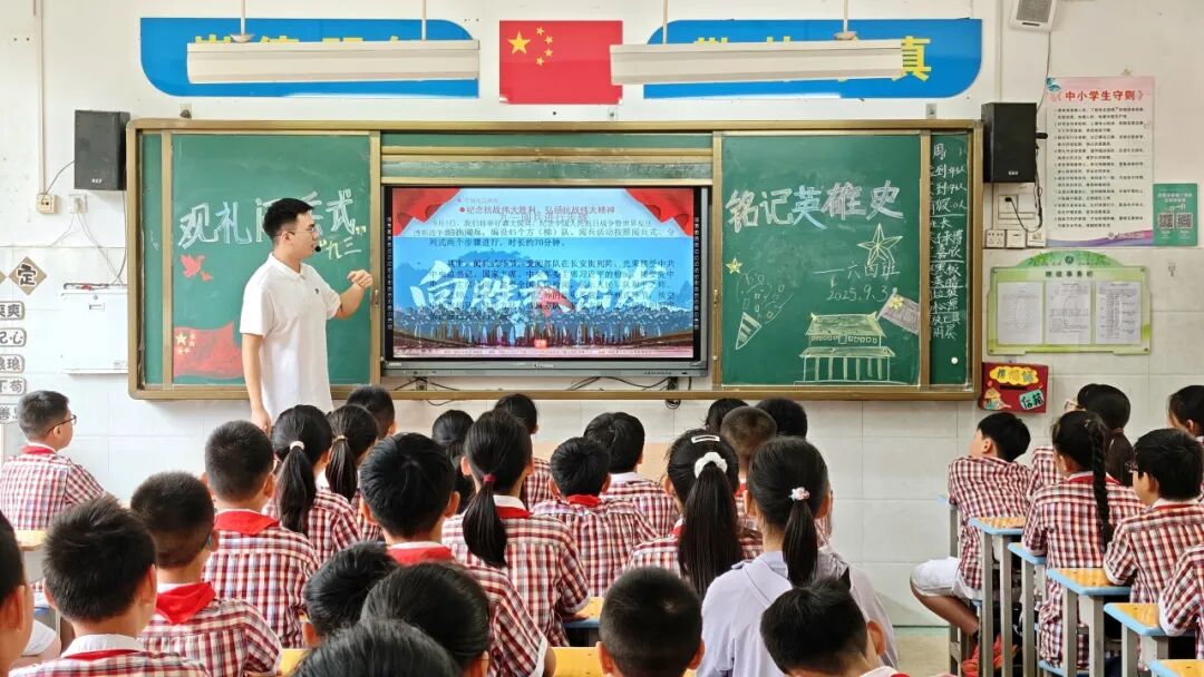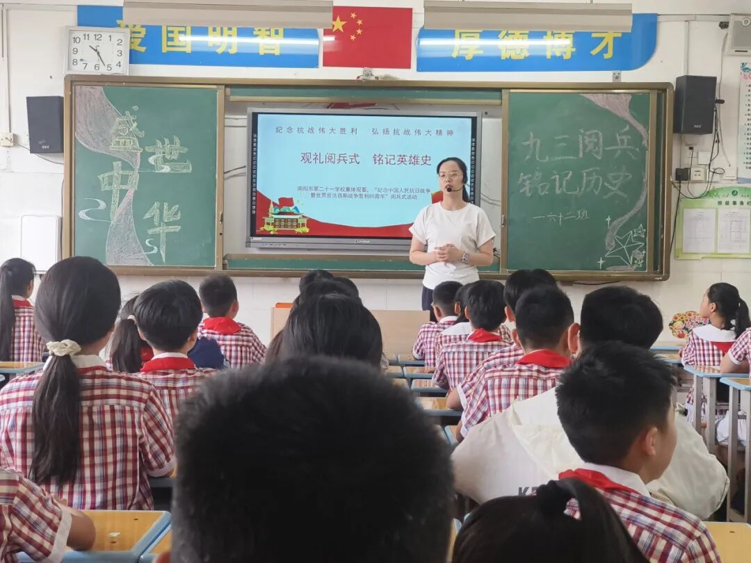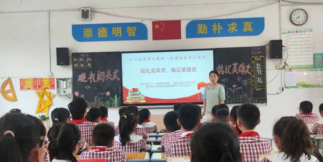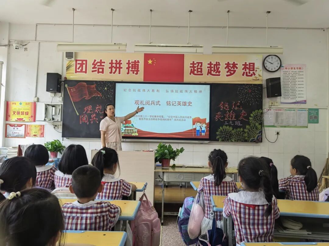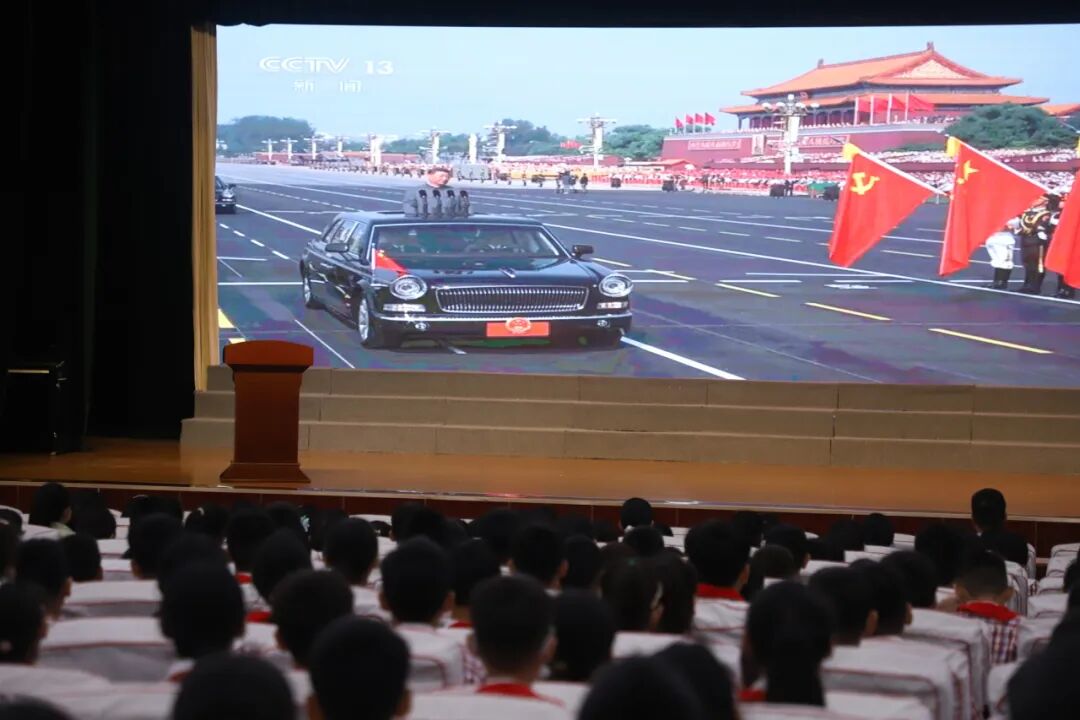 与此同时,热烈的氛围充盈着校园的角落,我校其他班级也精心准备,组织学生在教室里观看阅兵式,并开展主题班队会,学生谈感想、说感悟,在交流中把爱国情、强国志、报国行熔铸为成长的坚定信念 。