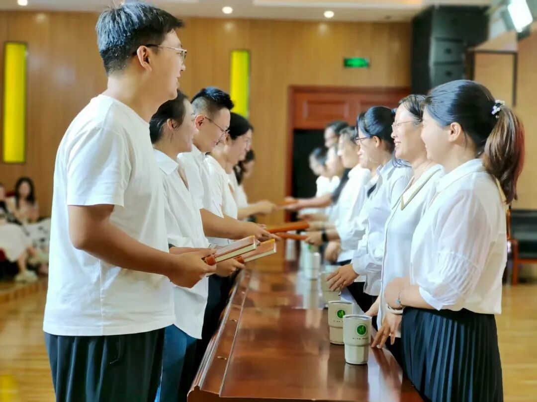 在庄重的“授印·承诺”环节中,校领导分三组为学科师傅及班主任师傅颁发了聘书。一纸聘书,承载的是学校的信任与教育的传承。