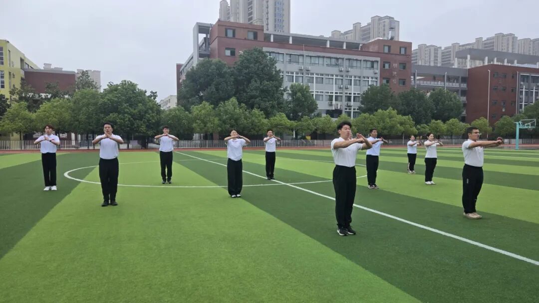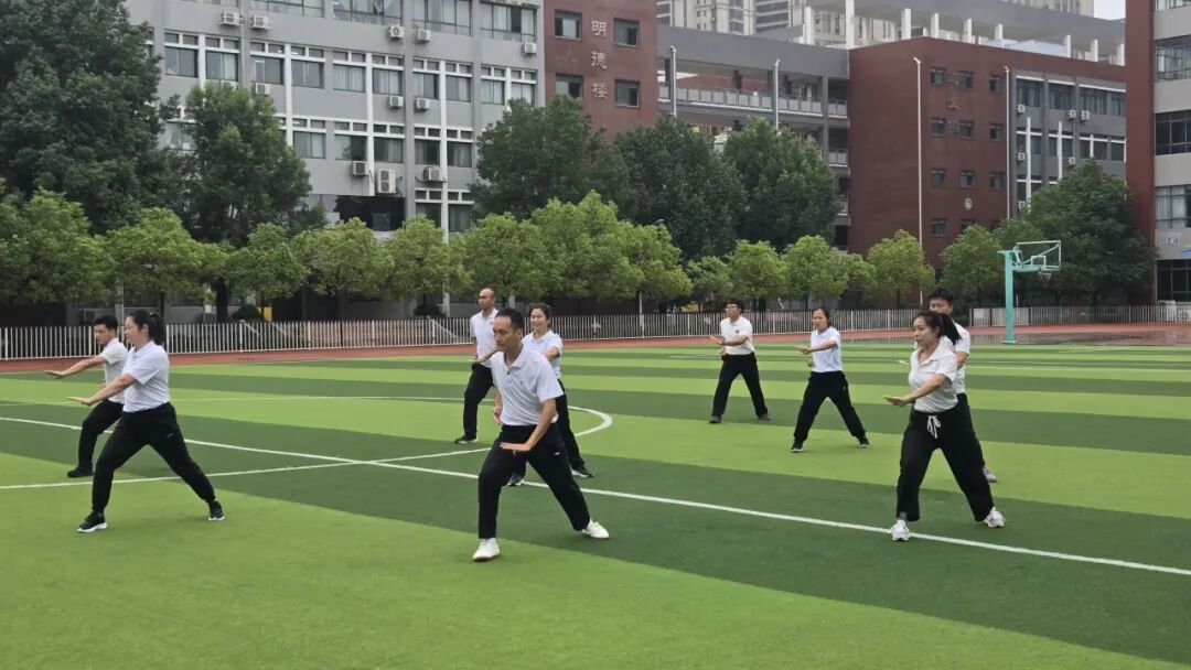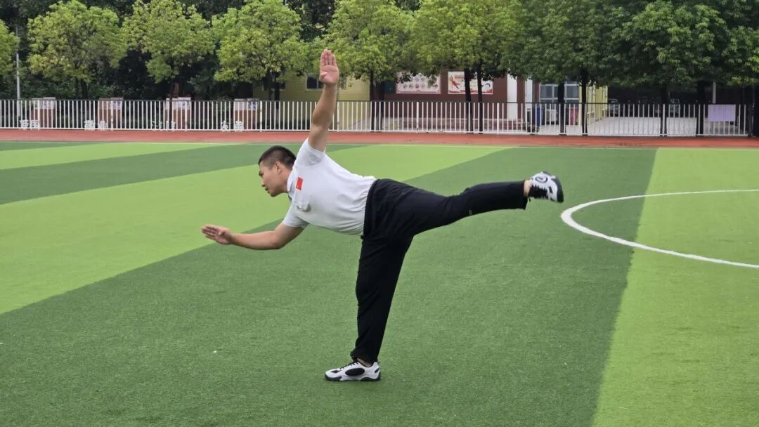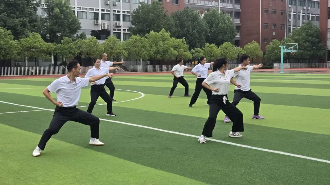 紧接着,学校自编武术操《少年励志》的展示瞬间将现场气氛推向高潮,“哈!”“嘿!”的呐喊声铿锵有力,回荡在校园上空,老师们出拳刚劲迅猛、踢腿凌厉如风,一招一式间尽显武术的精气神,不仅让自编操的独特魅力得以绽放,更向在场每一个人传递出积极向上、奋勇拼搏的体育精神。