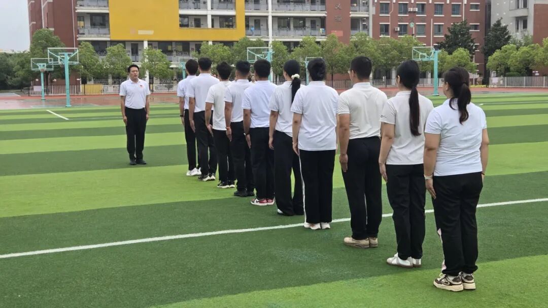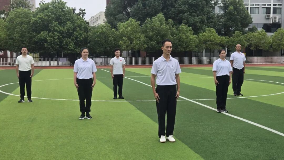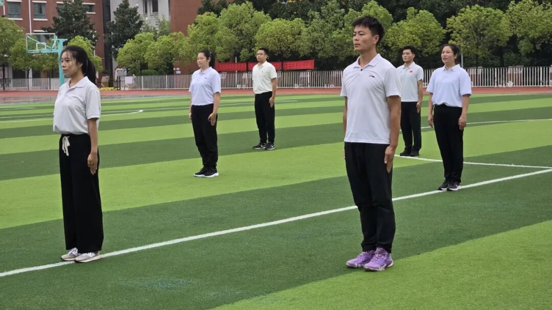 队列队形展示环节,着重考验教师的组织协调能力与团队凝聚力。在领操教师清晰响亮的指令下,老师们迅速完成立正、稍息、原地转法、齐步走等一系列动作,队伍变换行云流水,脚步声、口令声交织成整齐的节奏。队列队形的成功展示彰显着老师们高度的默契与协作意识,让团队的向心力在此刻汇聚成耀眼的光芒。