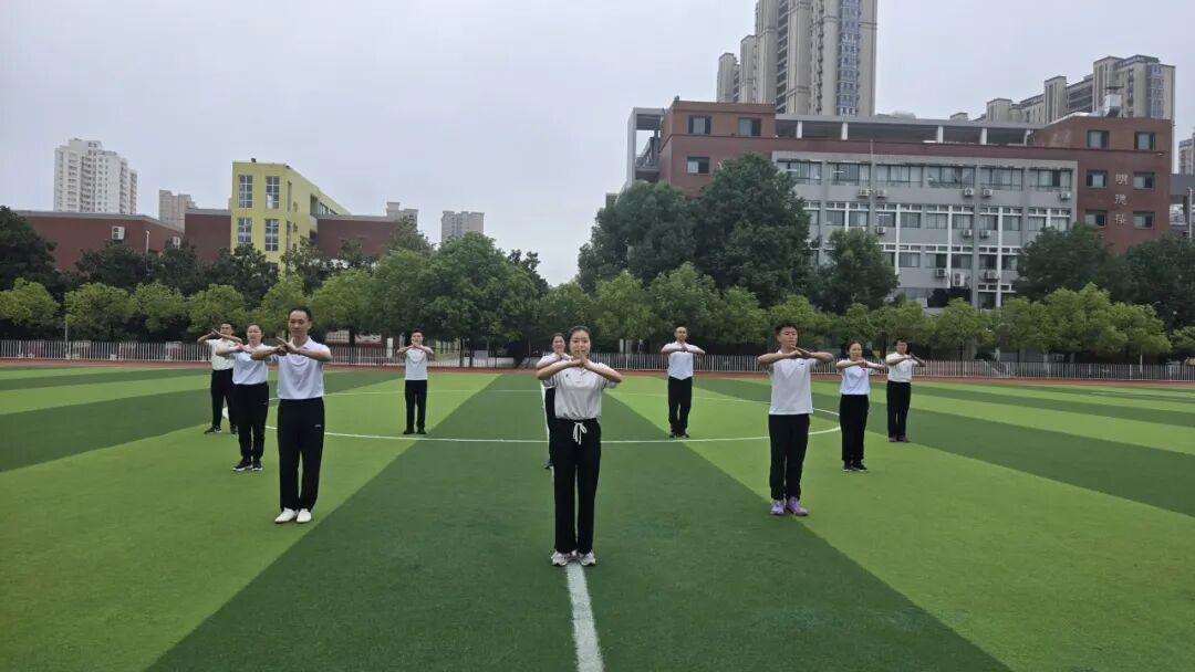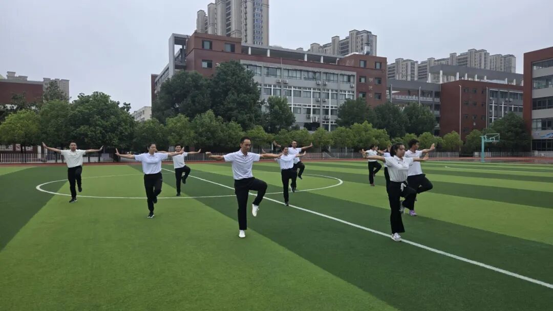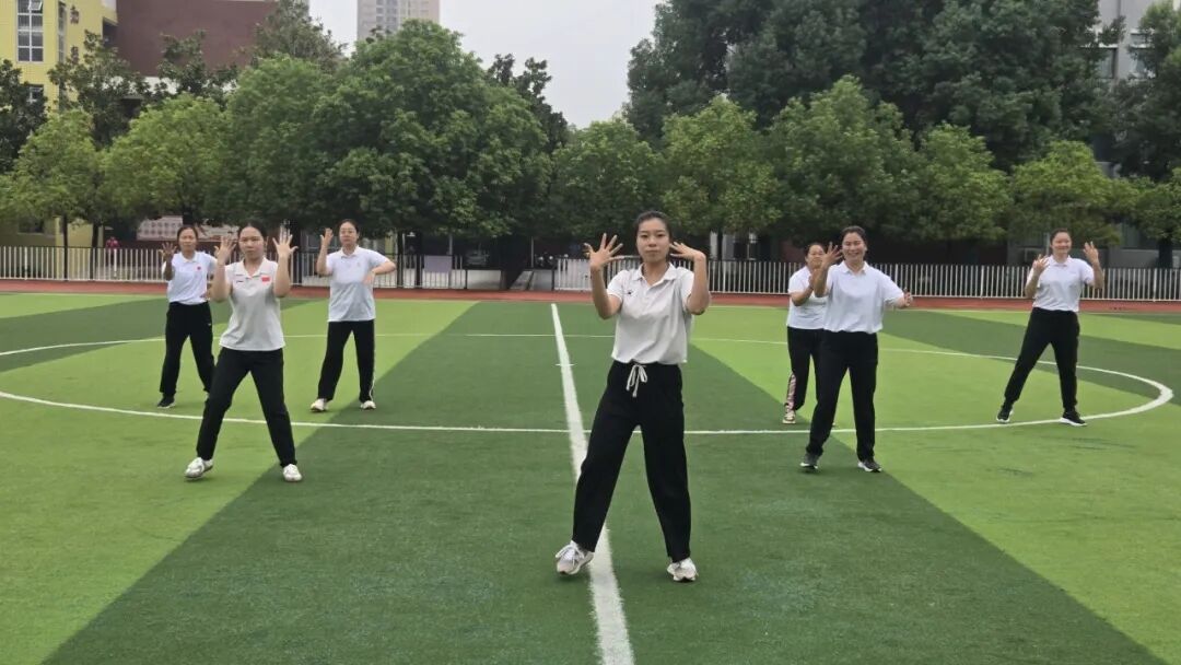 随着清脆的哨声划破操场,广播操《七彩阳光》展示率先登场。老师们身着统一运动服,精神抖擞地列队站定。当熟悉的音乐响起,伸展、扩胸、踢腿、弯腰,每一个动作都标准规范、舒展有力,整齐划一的姿态如同一幅动态的画卷,将体育教师扎实的基本功底展现得淋漓尽致。