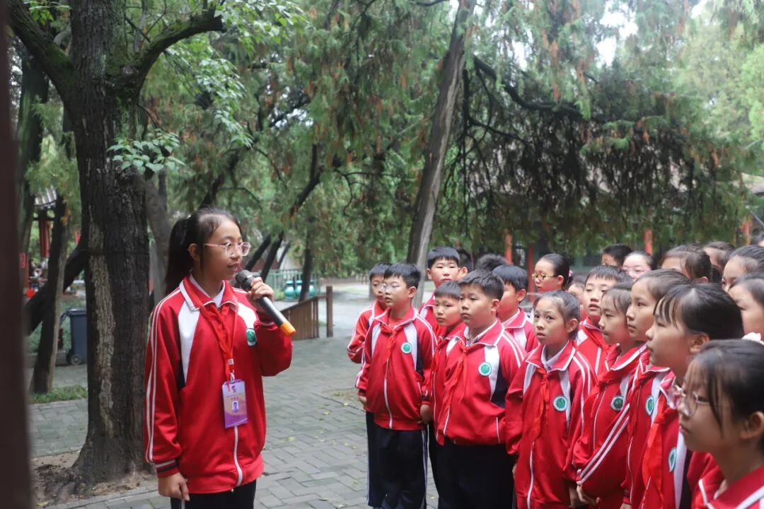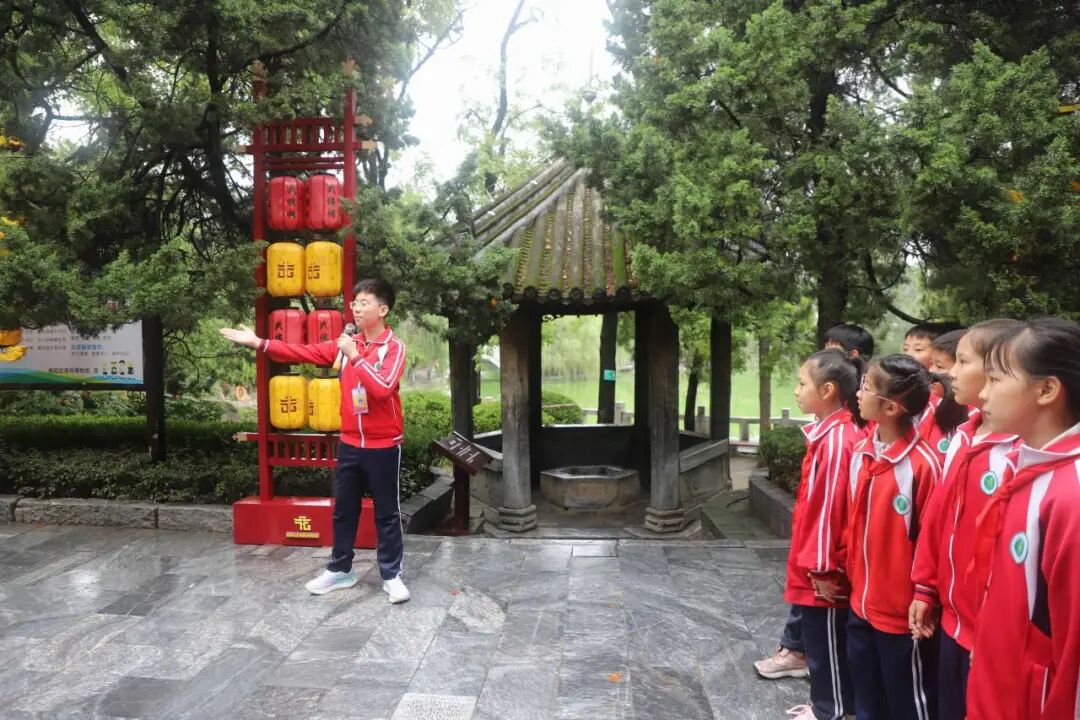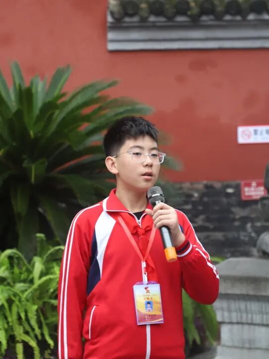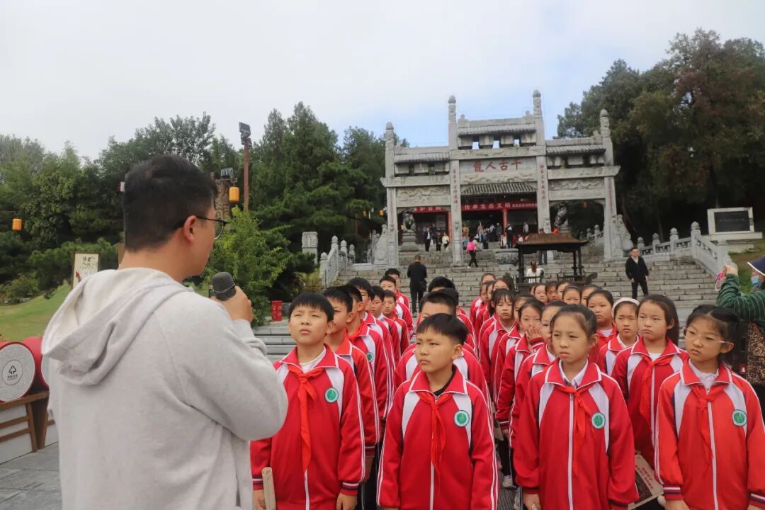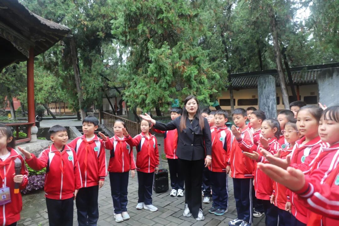 从宏伟的大拜殿到诸葛草庐,从《出师表》碑刻到半月台,小小讲解员们用稚嫩却坚定的声音,将诸葛亮的生平事迹、智慧谋略娓娓道来。“诸葛亮在南阳隐居期间,虽耕读于陇亩,却心怀天下,最终辅佐刘备建立蜀汉政权……”清晰的讲解、生动的故事,不仅展现了少年们对历史的深刻理解,更让在场师生仿佛穿越千年,置身于那个群雄逐鹿的三国时代。