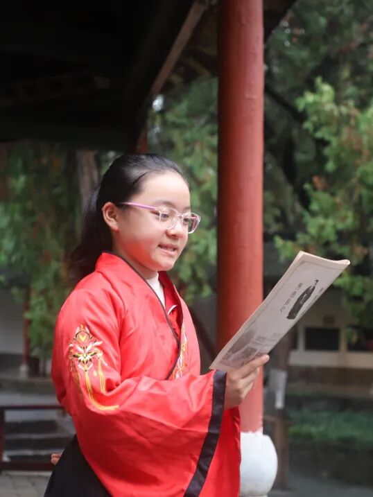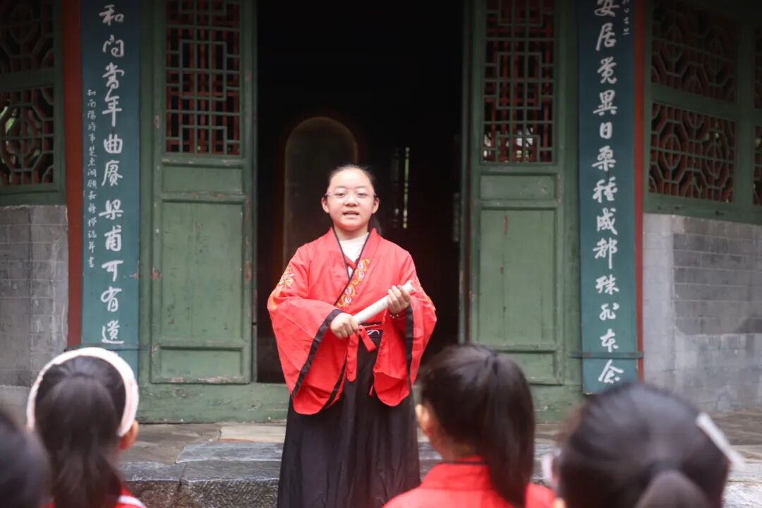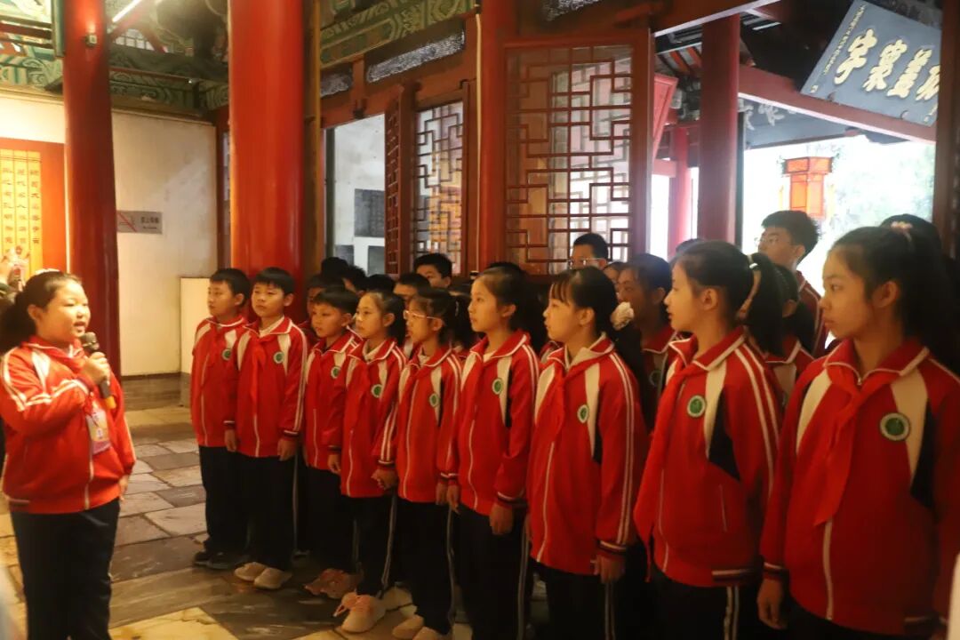 在充满古韵的博物馆内,同学们身着汉服,深情诵读《陋室铭》与《出师表》。孩子们在“斯是陋室,惟吾德馨”的字句里,探寻刘禹锡安贫乐道、坚守本心的智慧;在“鞠躬尽瘁,死而后已”的誓言中,感悟诸葛亮忠肝义胆、以身许国的文人风骨。这种沉浸式的诵读,不仅让先贤的文字从课本走向现实,更让学生们在传统文化的滋养中,汲取成长的力量。