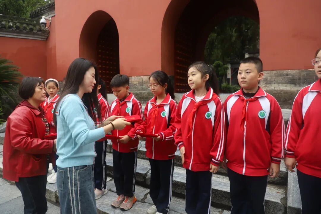 青砖黛瓦间,流转千年三国风云;草木葱茏处,回荡诸葛孔明智慧。9月24日上午,南阳市第二十一学校的“红领巾”讲解员们走进南阳武侯祠博物馆,开展“行走卧龙岗,诵读三国韵”主题活动。在行走与诵读中,触摸历史遗迹,感受三国文化,在潜移默化中传承诸葛精神,培养家国情怀与责任担当,让优秀传统文化在少年心中生根发芽。