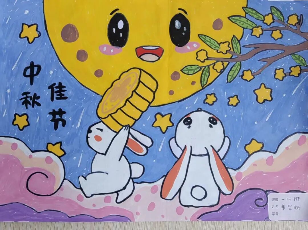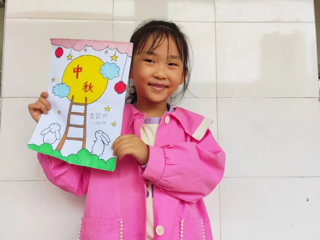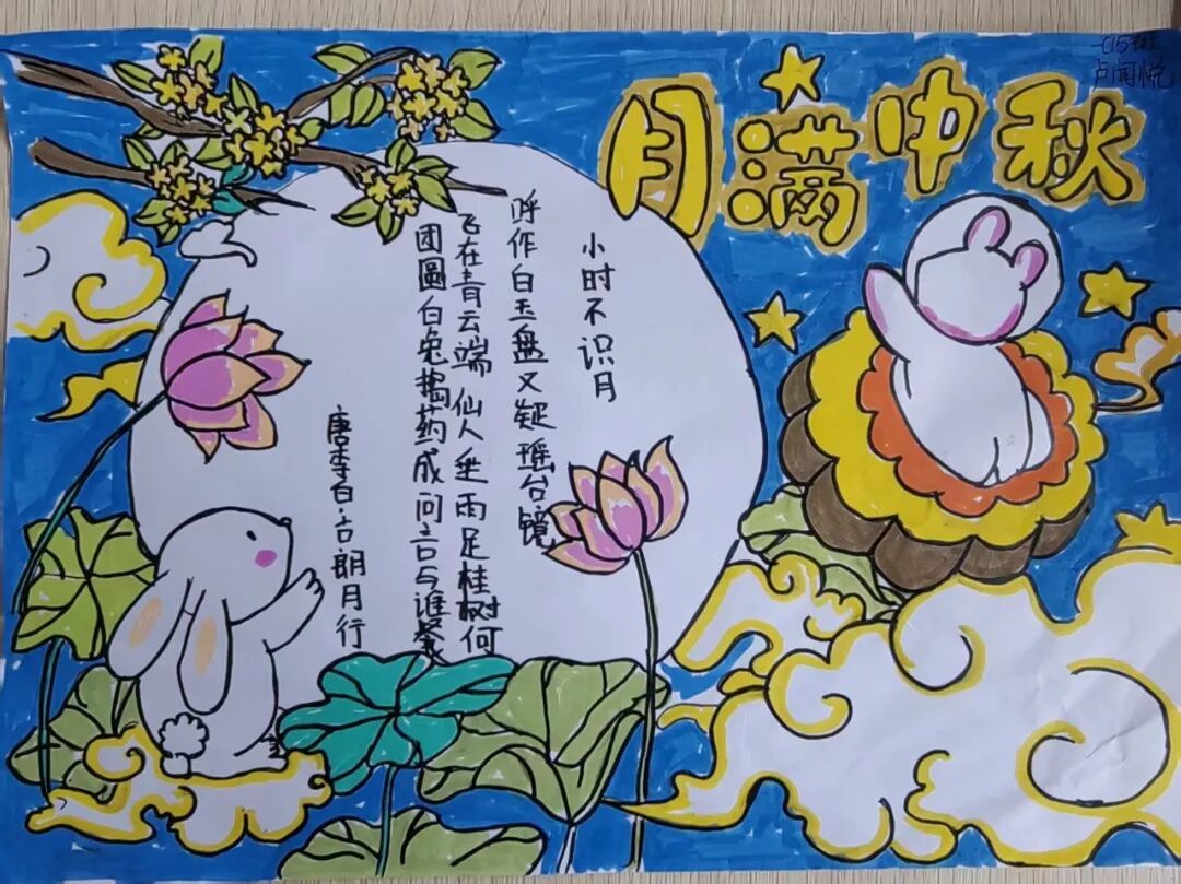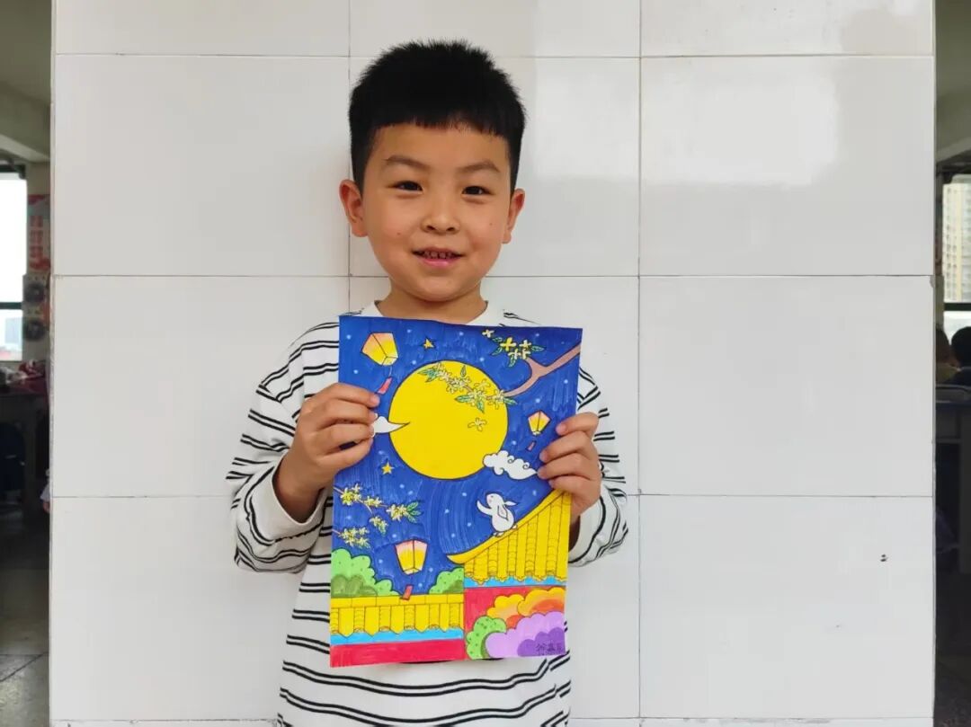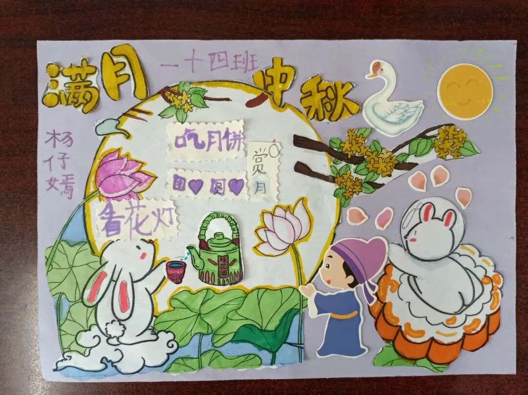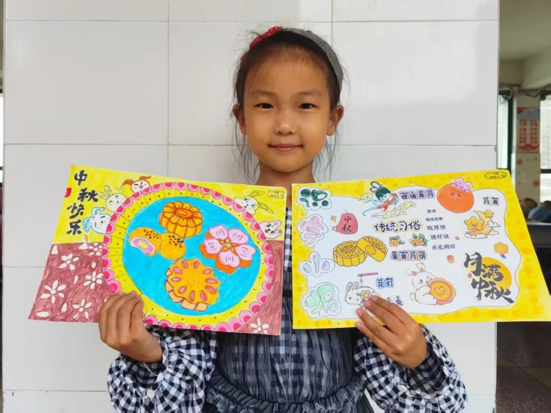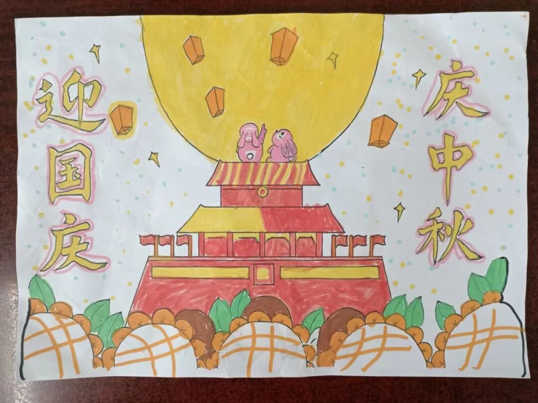 “我心中的中秋月,是挂在彩虹上的!”“我的中秋月里,有小兔子和桂花树!”在“勾勒中秋月”环节,孩子们拿起马克笔,在A4纸上尽情挥洒创意。色彩鲜明的画作里,藏着他们对中秋最纯真的想象;而在识字小报制作中,孩子们剪贴生活里与“中秋”相关的字词,既锻炼了动手能力,又加深了对节日的认知。