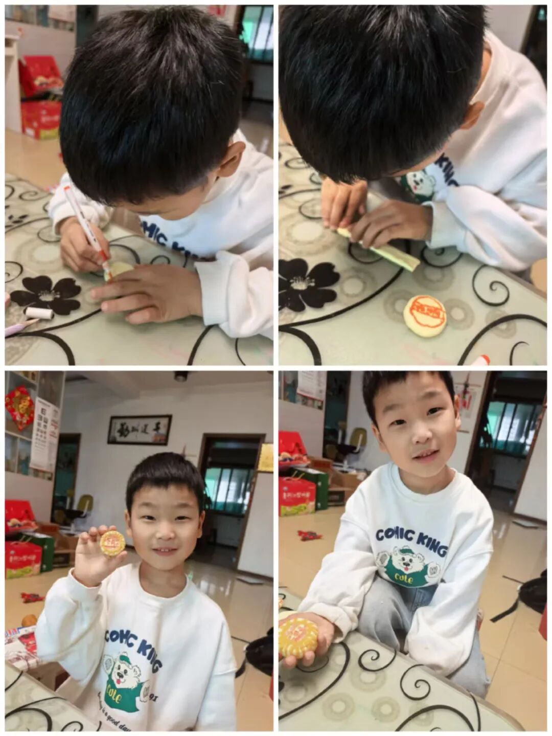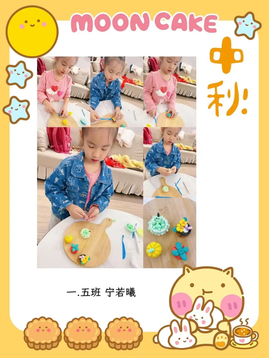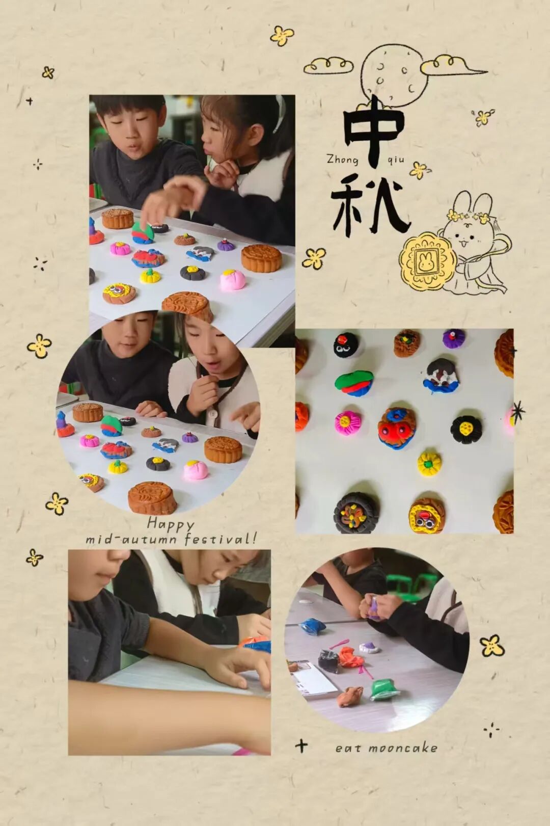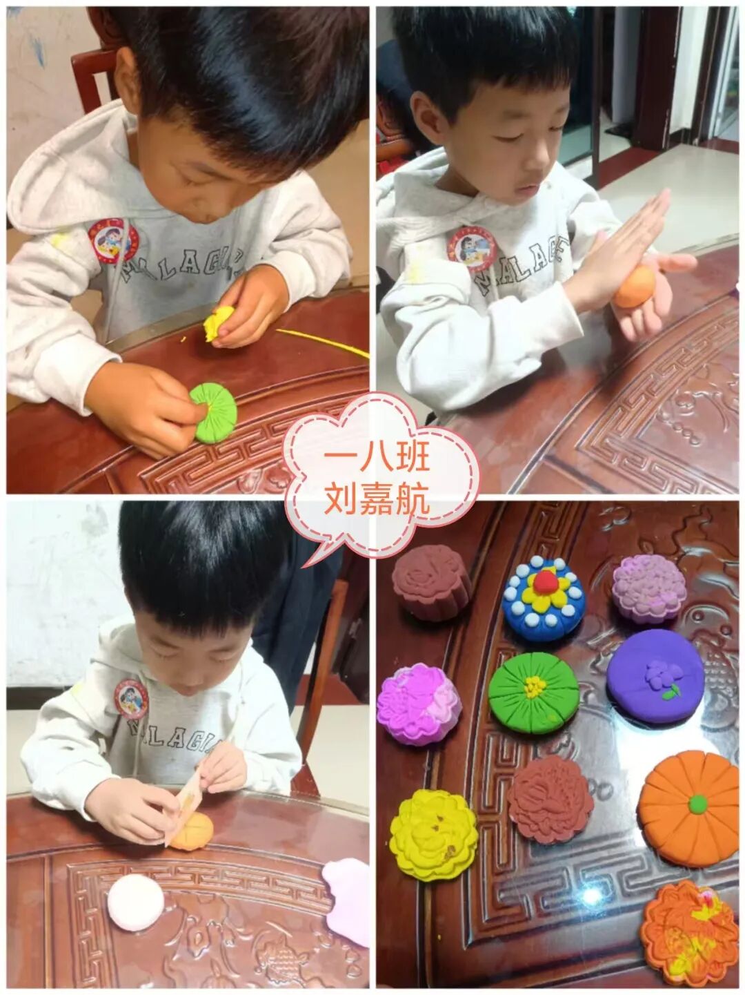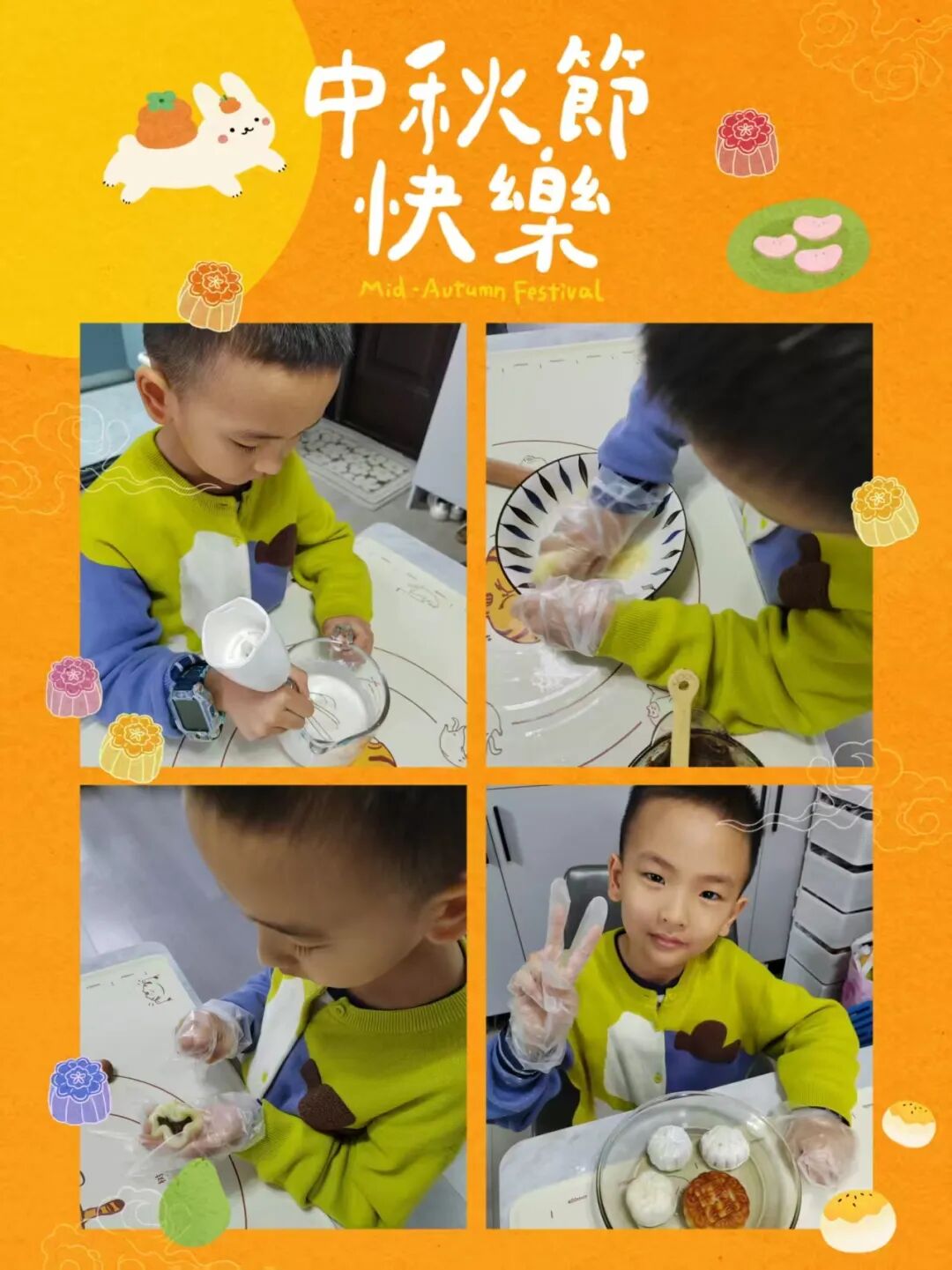 家长与孩子默契合作,开启了一场趣味十足的“月饼创作之旅”。有的用粘土捏出憨态可掬的卡通月饼,有的用冰皮和馅料制作出软糯香甜的真实月饼。揉、捏、压、包,每一个步骤都充满欢声笑语,孩子们不仅记录下制作过程,还与自己的“中秋作品”合影,定格这份动手的快乐与节日的甜蜜。