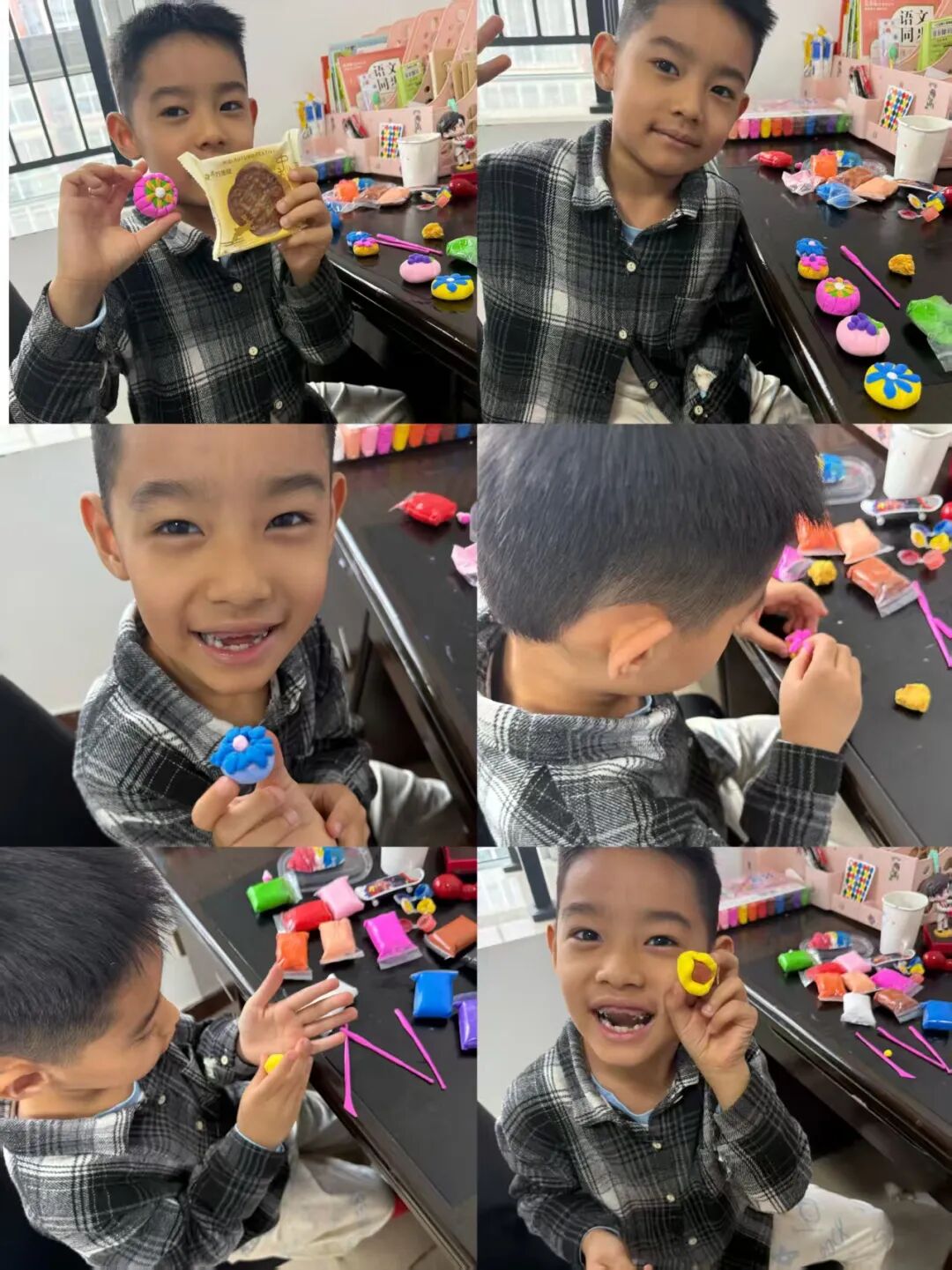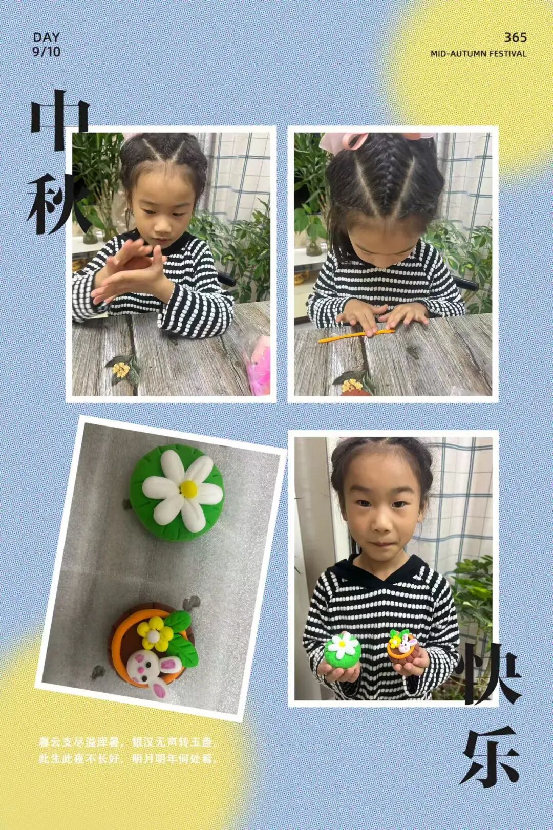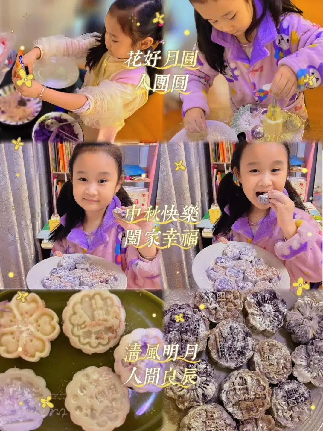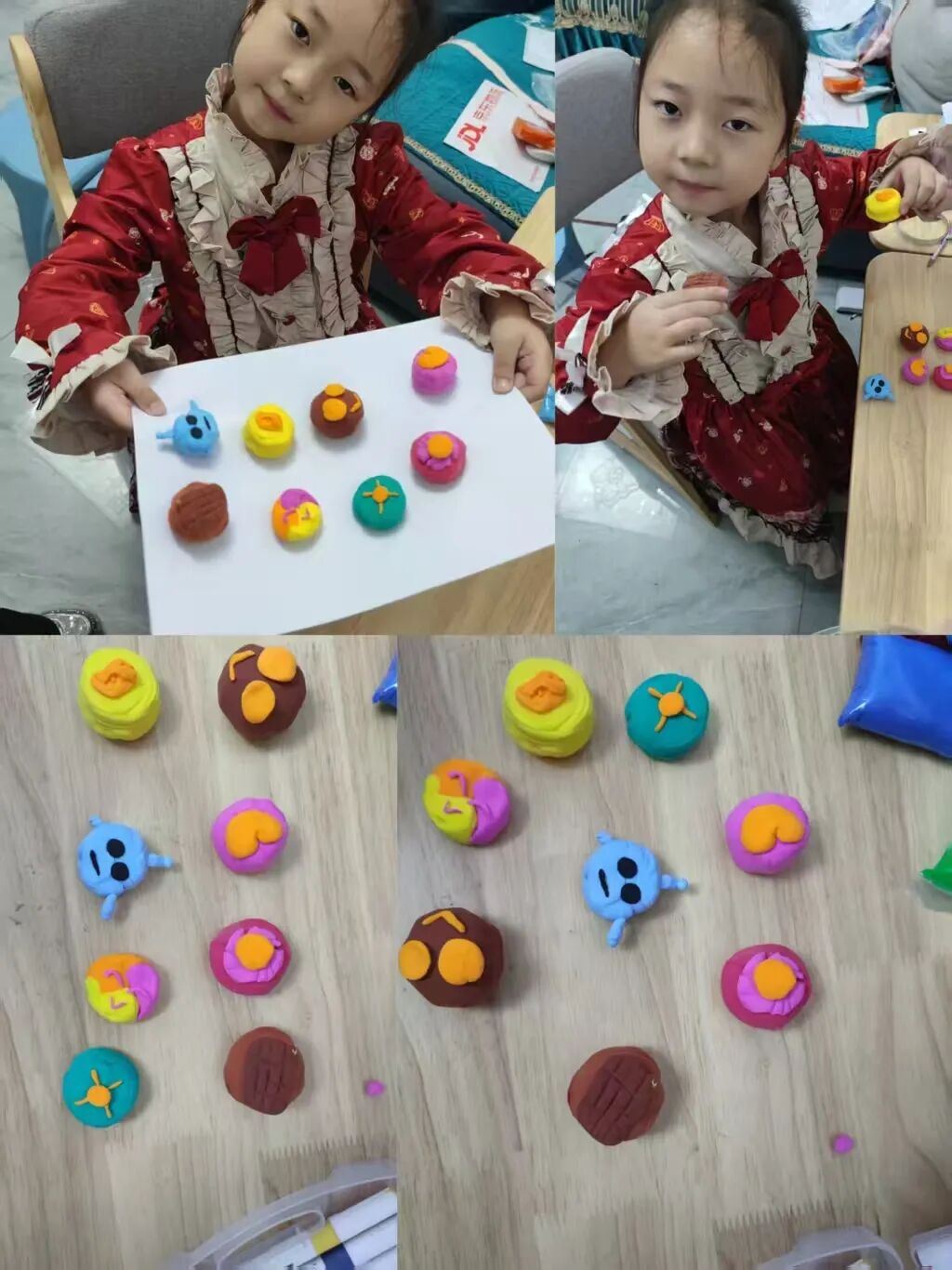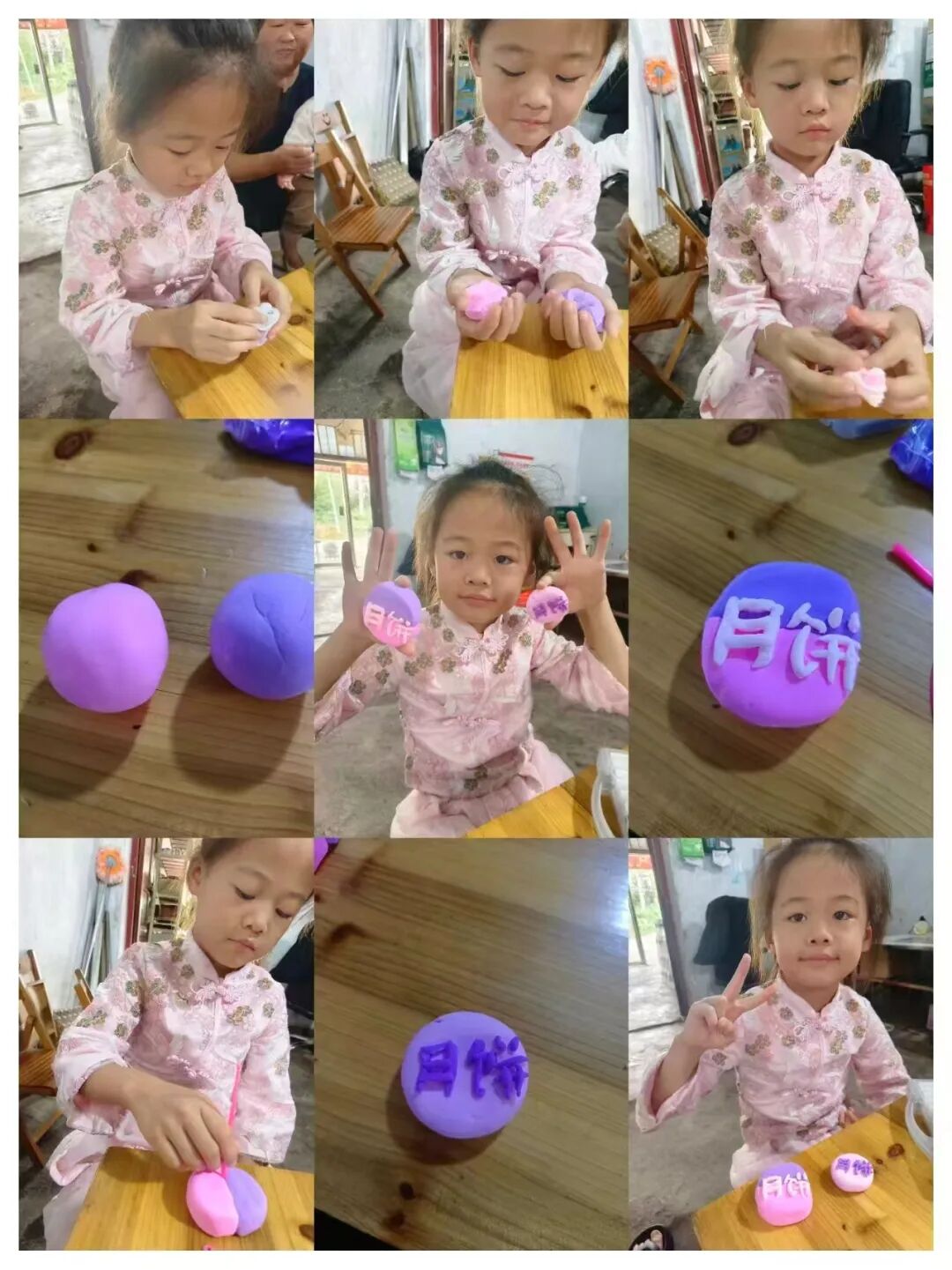 家长与孩子默契合作,开启了一场趣味十足的“月饼创作之旅”。有的用粘土捏出憨态可掬的卡通月饼,有的用冰皮和馅料制作出软糯香甜的真实月饼。揉、捏、压、包,每一个步骤都充满欢声笑语,孩子们不仅记录下制作过程,还与自己的“中秋作品”合影,定格这份动手的快乐与节日的甜蜜。