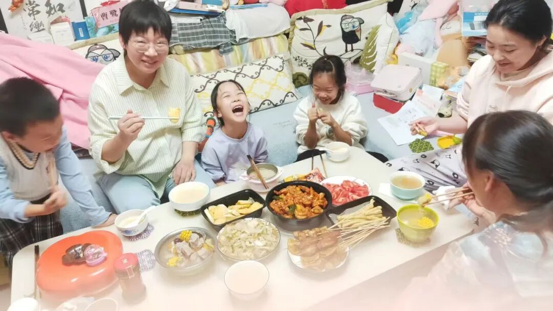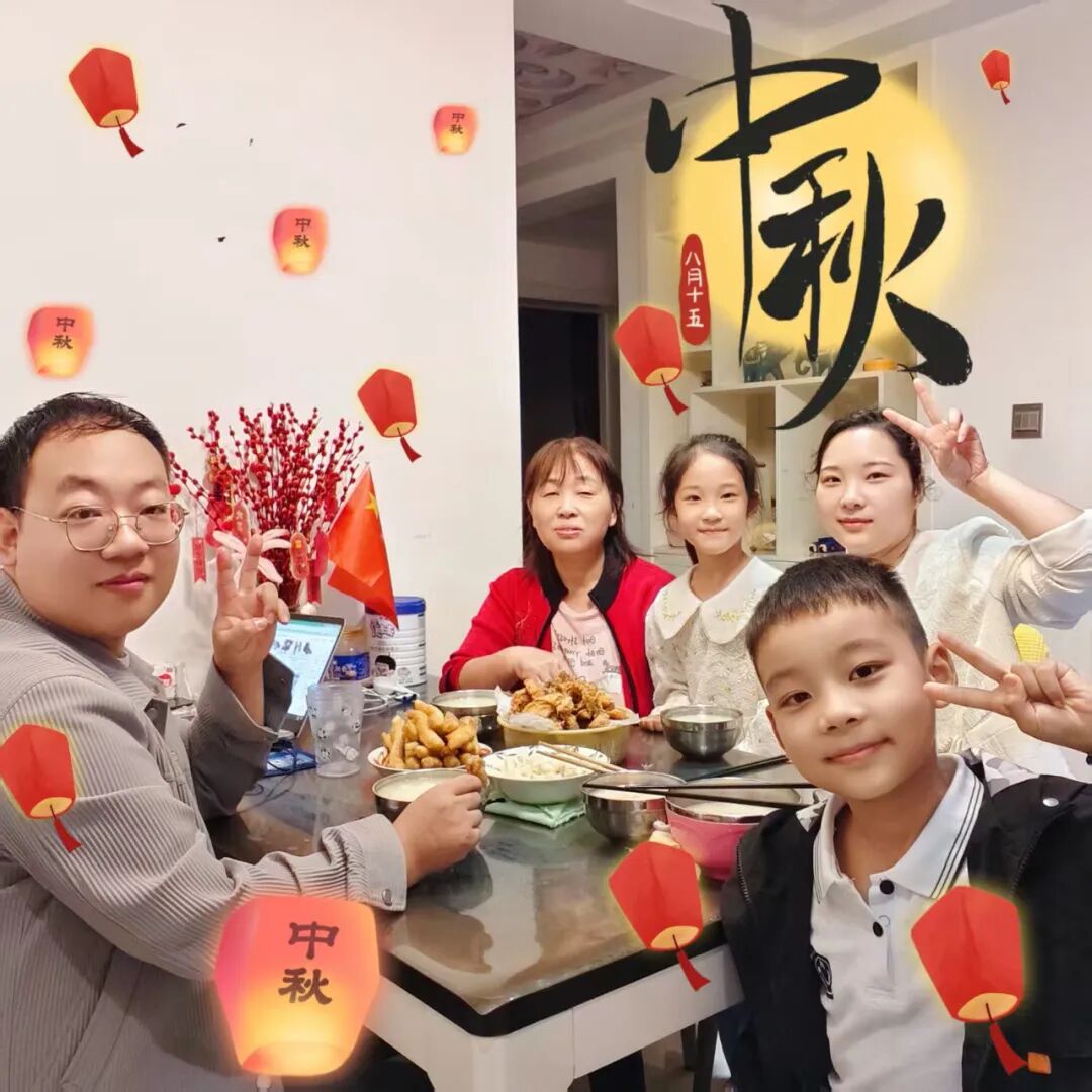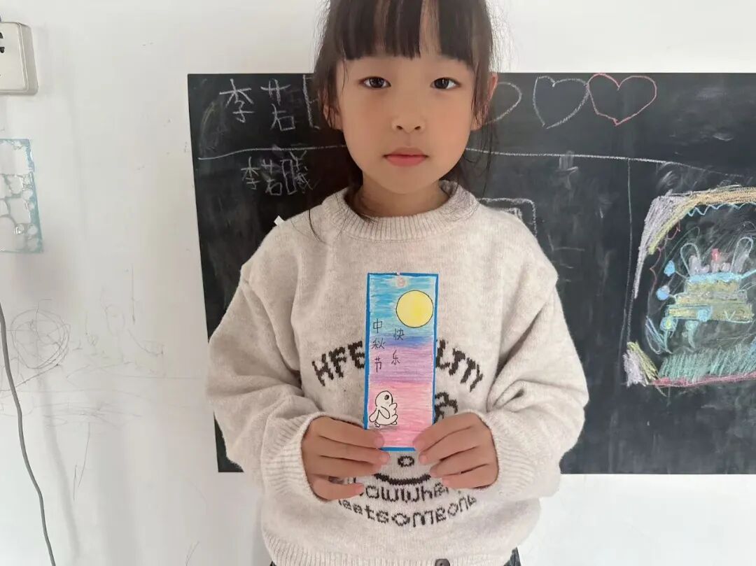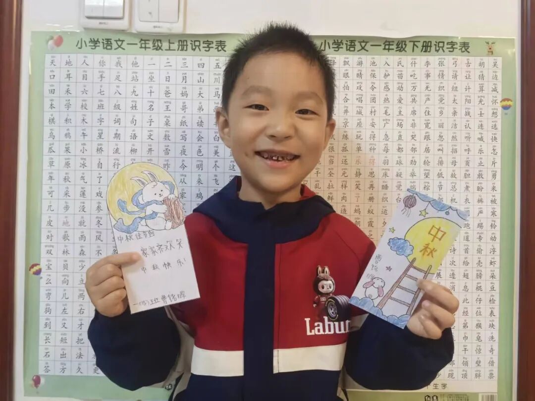 中秋的温暖,藏在一顿热气腾腾的团圆饭里。孩子们与家人围坐餐桌,共享美味佳肴,用相机拍下温馨合影,留住幸福瞬间。此外,他们还精心制作祝福书签,将对家人的爱意与中秋祝福写在上面,亲手送给家人,让这份节日的温暖在亲情间传递。