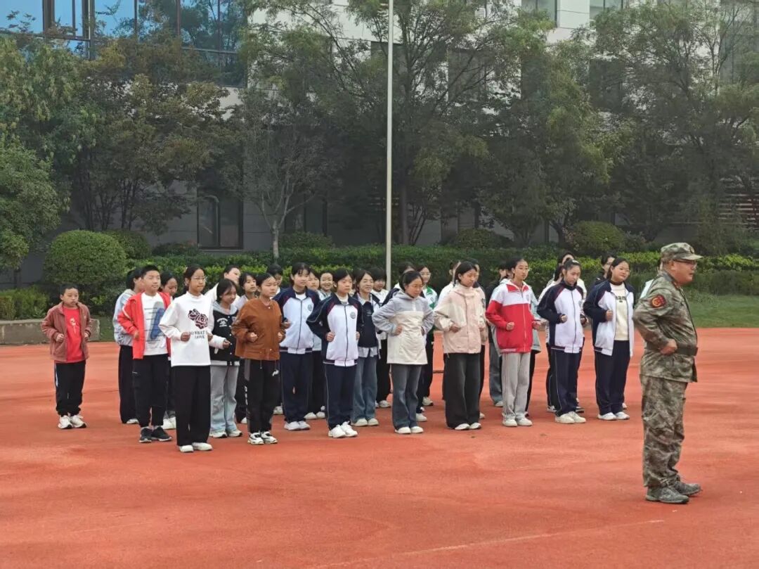 本次国防教育活动涵盖队列、拍拍操、手指操、跑步训练、三防教育等。从生疏到熟练,从散漫到专注,同学们在一次次练习中不断超越自我。挺拔的军姿、整齐的齐步走、有力的正步、飒爽的敬礼,每一个动作都凝聚着努力与坚持。阳光下的身影,是校园里最动人的画面。