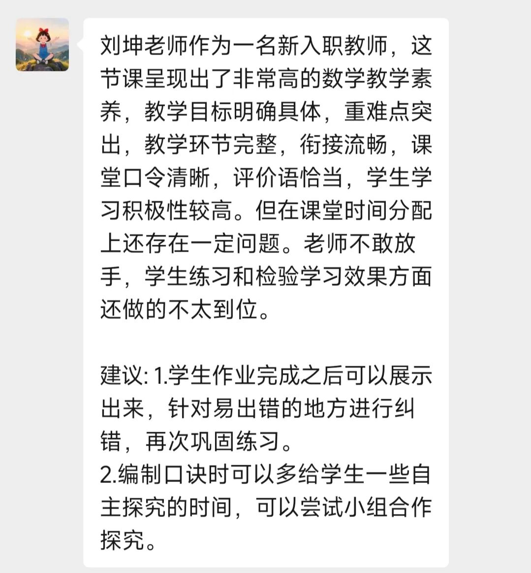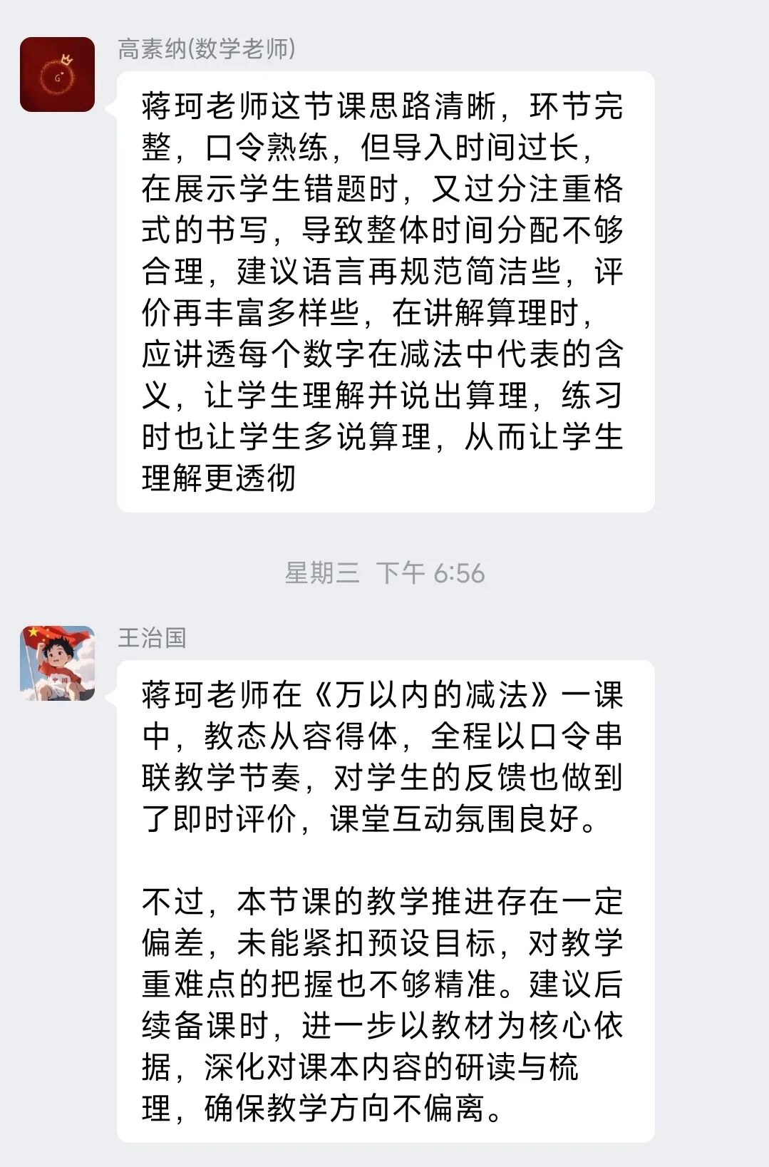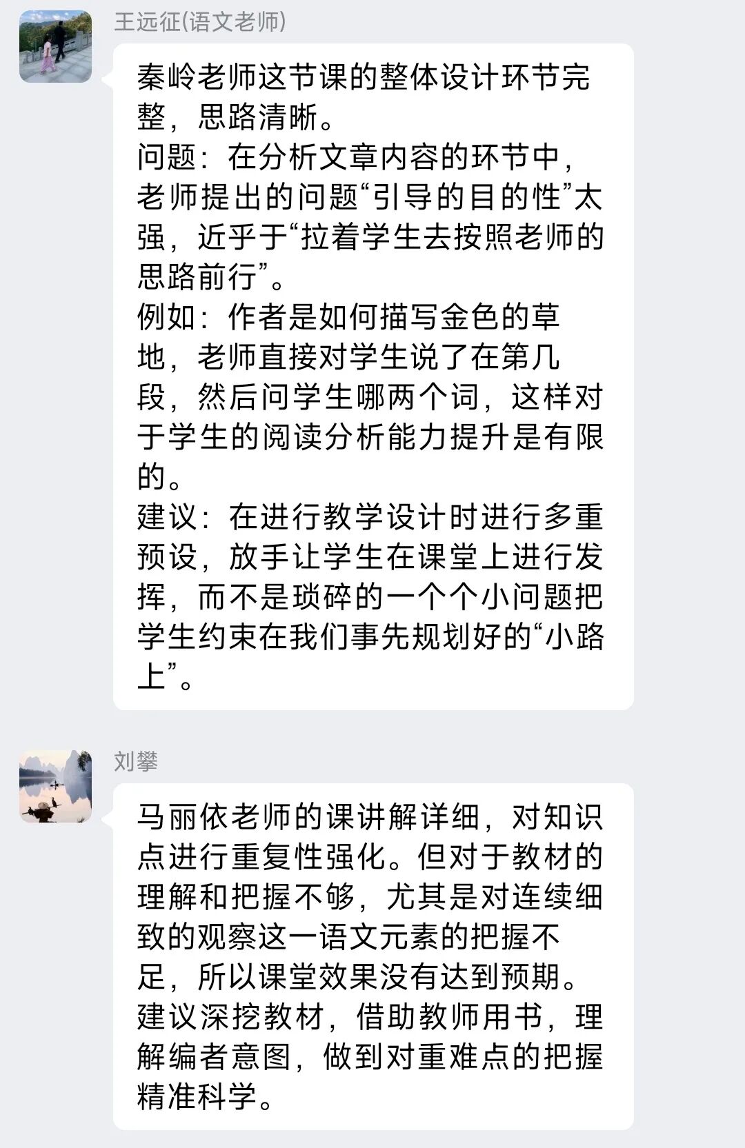 听课把脉后,各教研组的老师认真帮新老师分析教学过程中的亮点和不足,并针对不足提出对应的改进建议。大家在交流中互相学习、相互成长,受益匪浅。