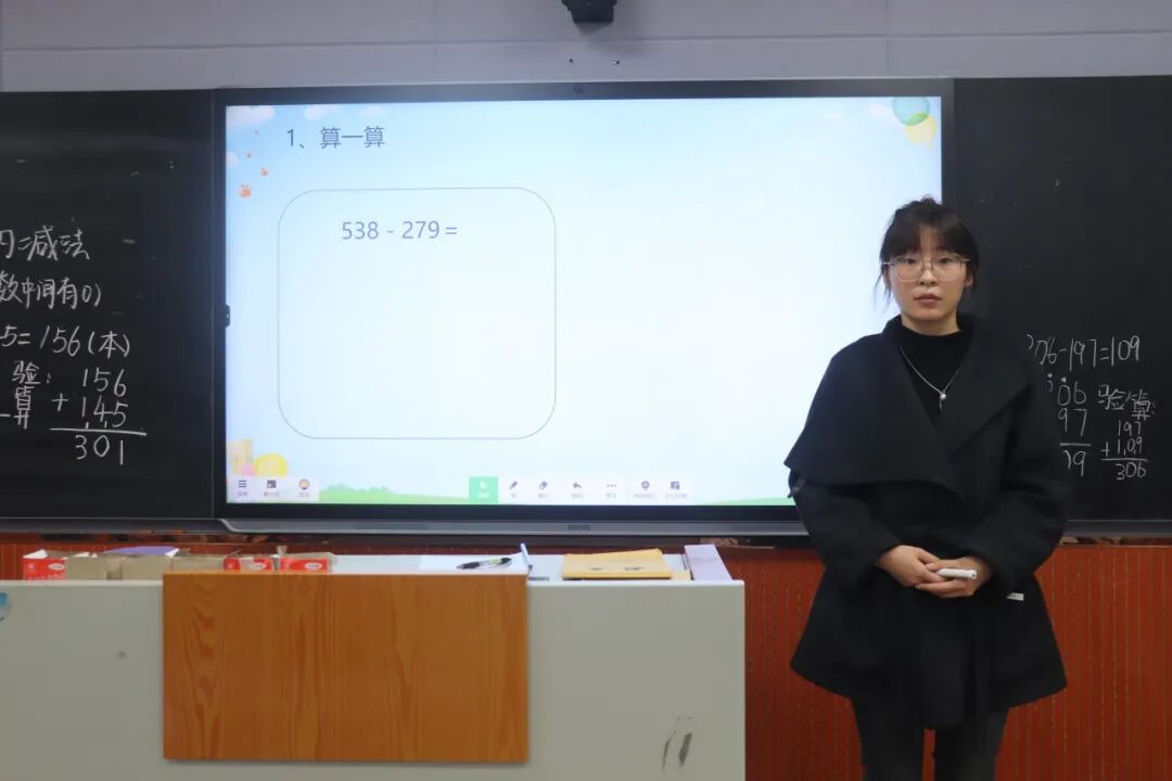 杨晓滢老师执教的《万以内的减法》一课,让学生借助小棒,计数器等工具,帮助快速理解了三位数减两、三位数的算理,教学目标明确,思路清晰。