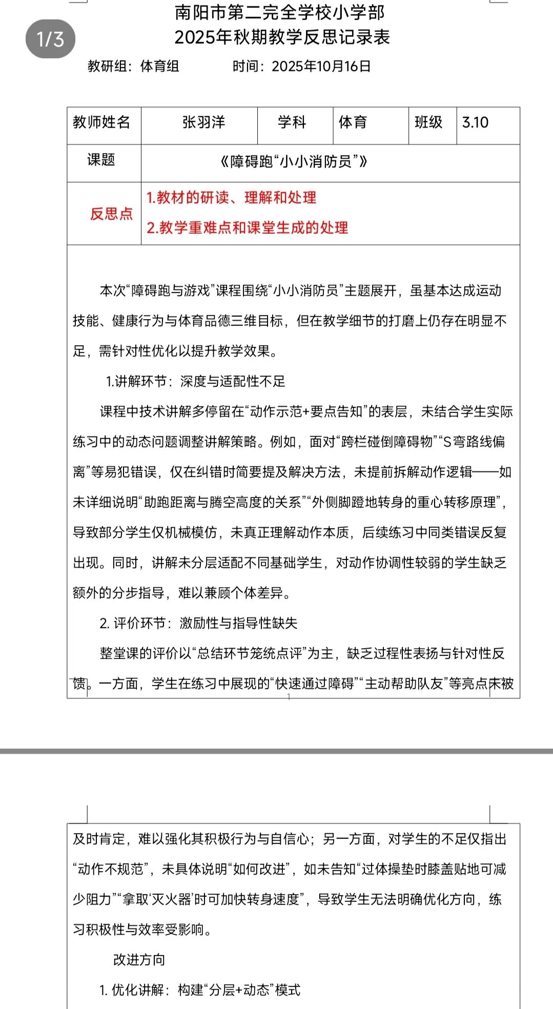 张羽洋老师执教的《障碍跑》一课,从“我是小小消防员”这一情景引入主题,让学生在树立消防员职业理想的同时,也体会到运动的快乐。