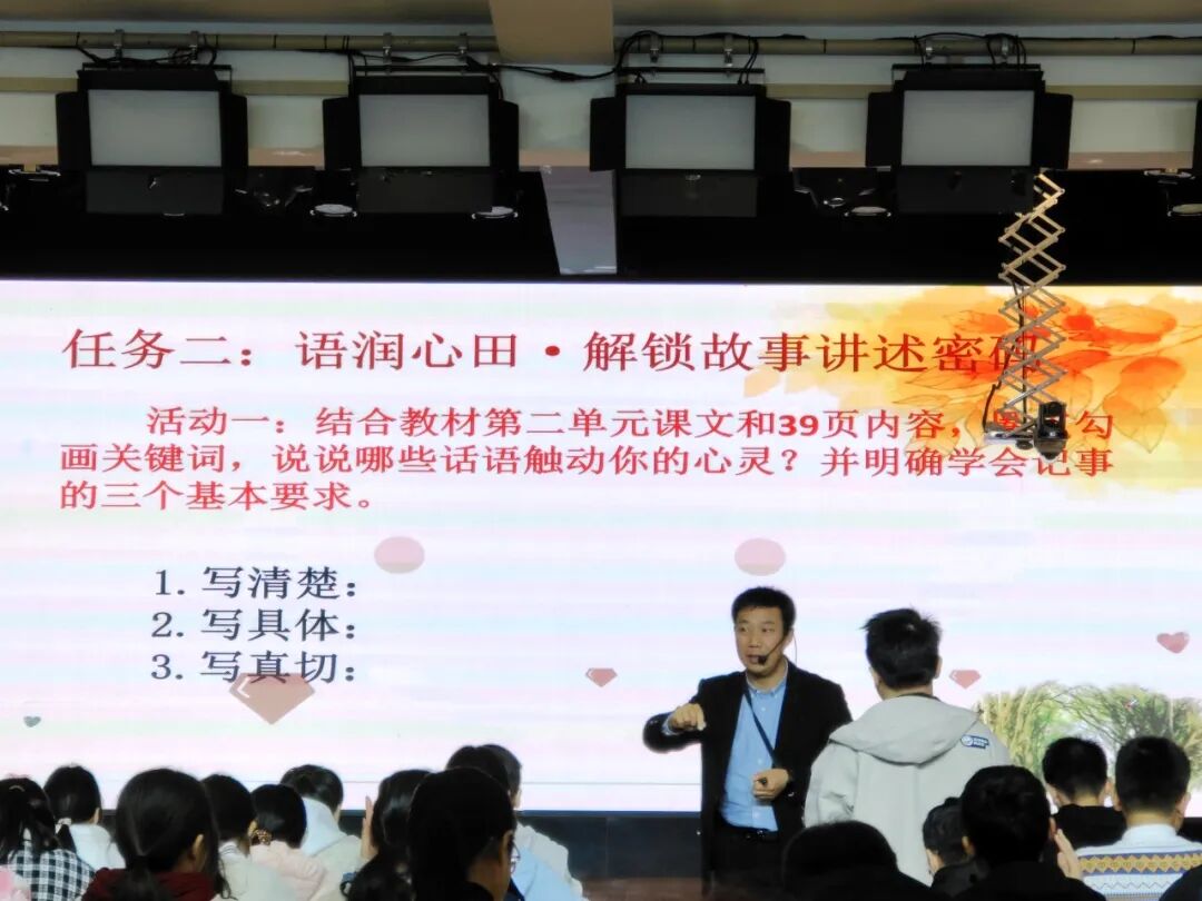 语文组教师深植新课标理念,践行以课育人新路径:黄学涛老师引生活事理启写作灵思,娄新玉老师借《散步》融亲情责任于情境,邰芳芳老师以“南仁东星”铸科学情怀,吴峥老师析“起承转合”破成长密码,屈小莉老师导小传写作兼育人,胡歌老师论“怀疑”筑理性根基,共绘语文育人新图景。