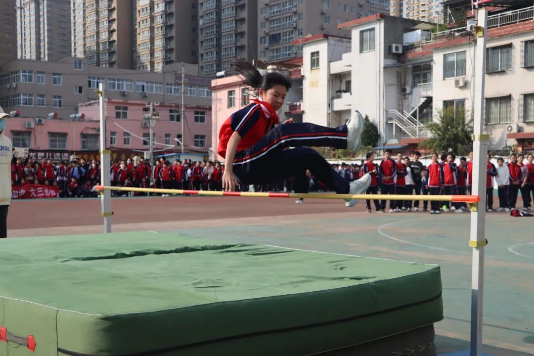 助跑、踏跳、腾空、过杆!一连串流畅的动作如雏鹰展翅,他们用灵活的身姿诠释着“更高、更快、更强”的体育精神,用执着的眼神书写着少年无畏的模样。