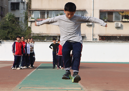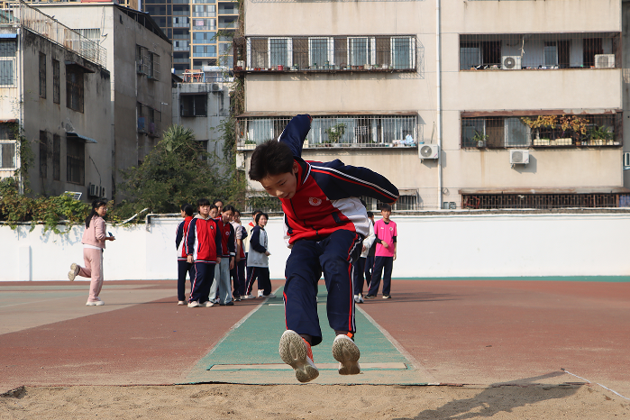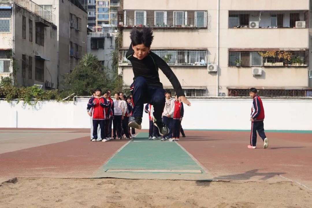 摆臂、加速、蹬地、腾空!每一步助跑都踏得坚定有力,每一次蹬地都爆发出少年的蓬勃朝气。这一刻,是力量与轻盈完美交融,是不断超越自我的见证。