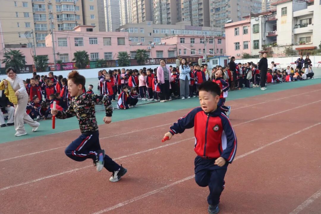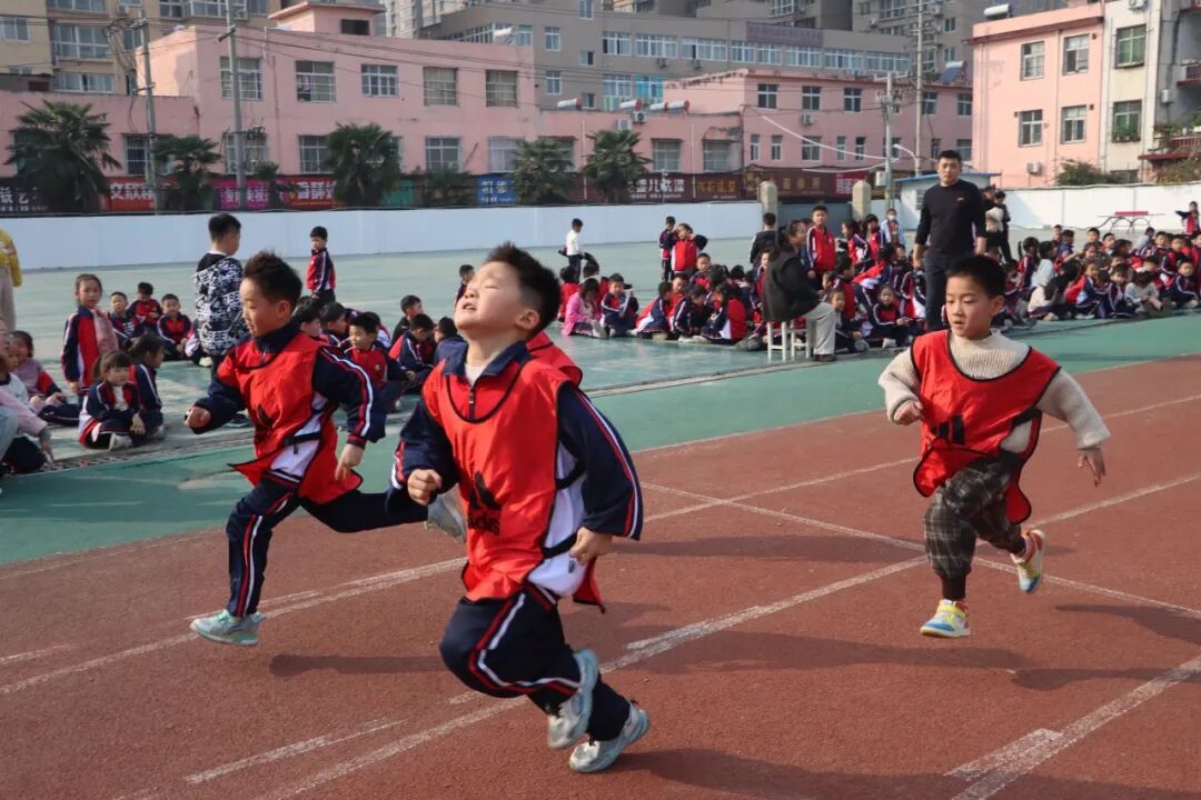 “各就位——预备——砰!”发令号划破长空,短跑比赛开始,小运动员们瞬间如离弦之箭冲出起跑线!他们迎着风、向着光,用尽全力冲刺,每一步都踏在拼搏的节拍上,每一次加速都凝聚着平日的汗水。