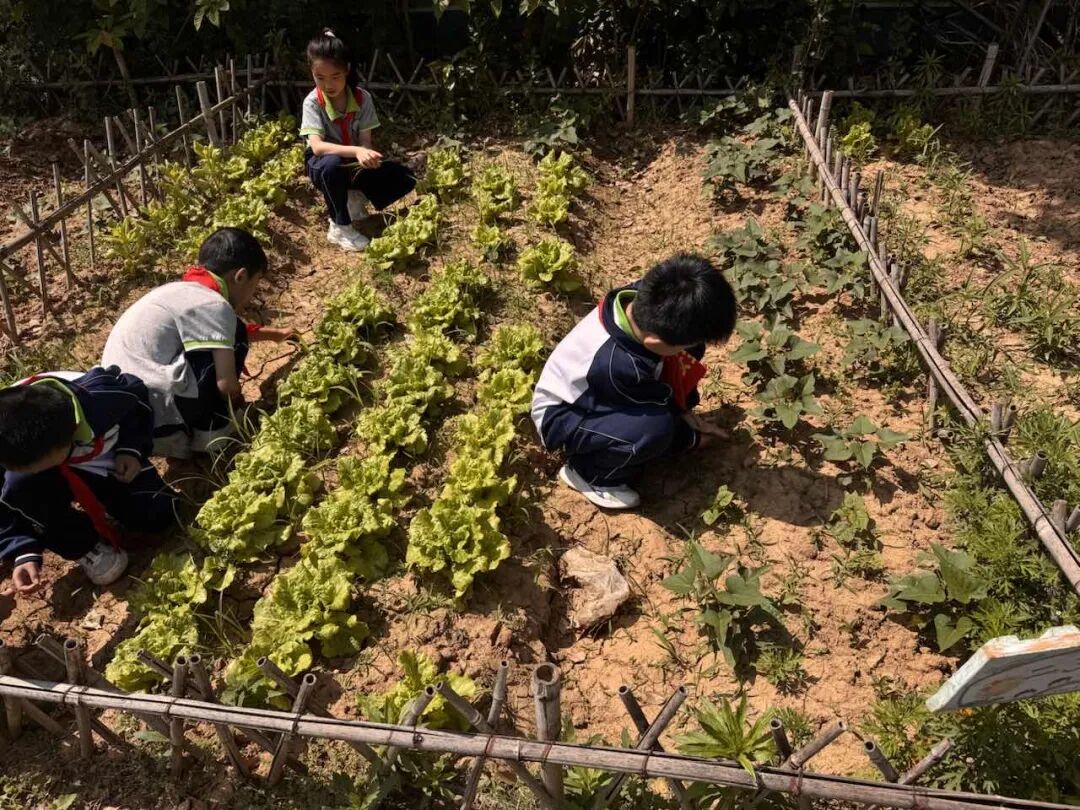 在开启秋耕之前,让我们将目光回溯。今年春期,各班的“责任田”里曾是一片生机勃勃。孩子们在老师们的带领下,定期为春日的菜苗浇水、除草、捉虫、丰收,见证了植物从幼苗到开花、结果的完整生命旅程。这份跨越季节的坚持与守护,是孩子们学到的最生动的责任课。