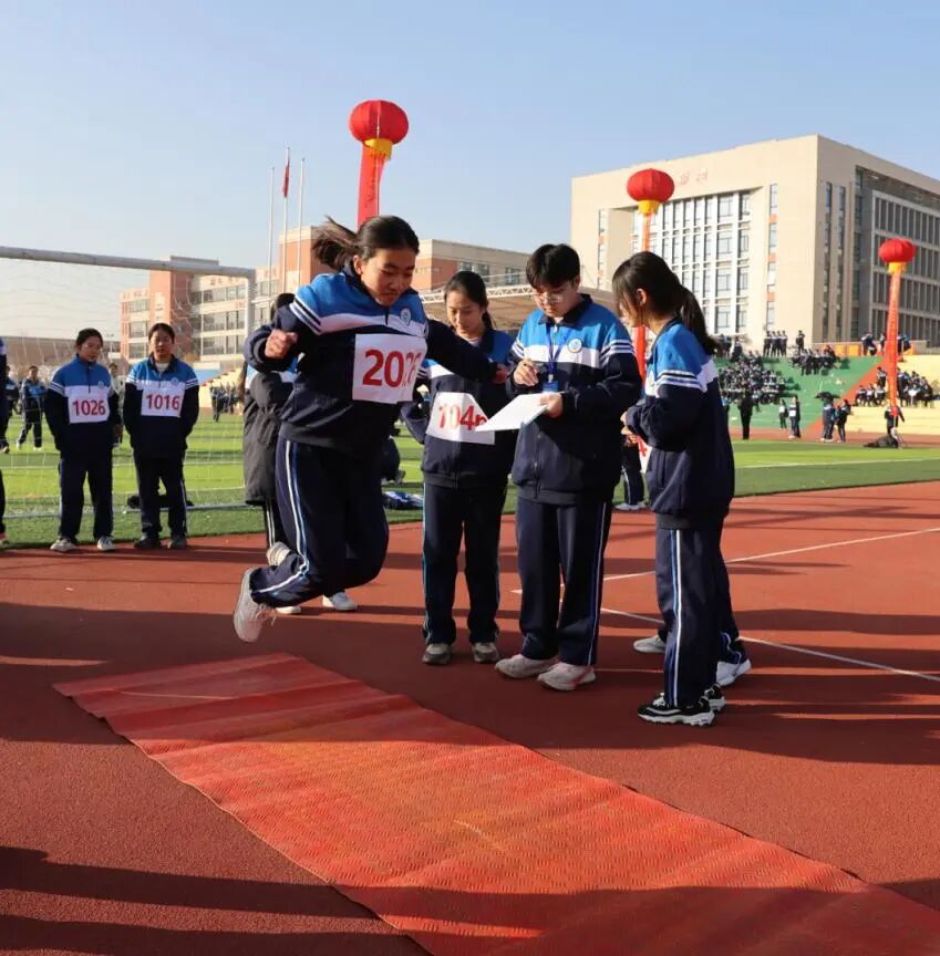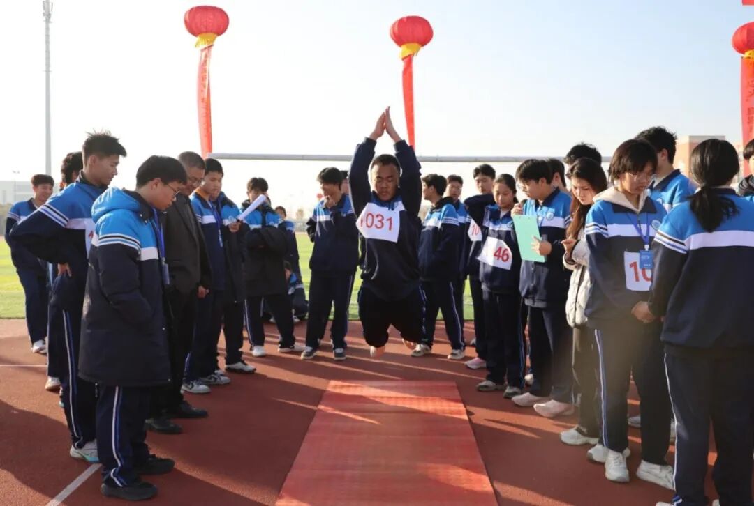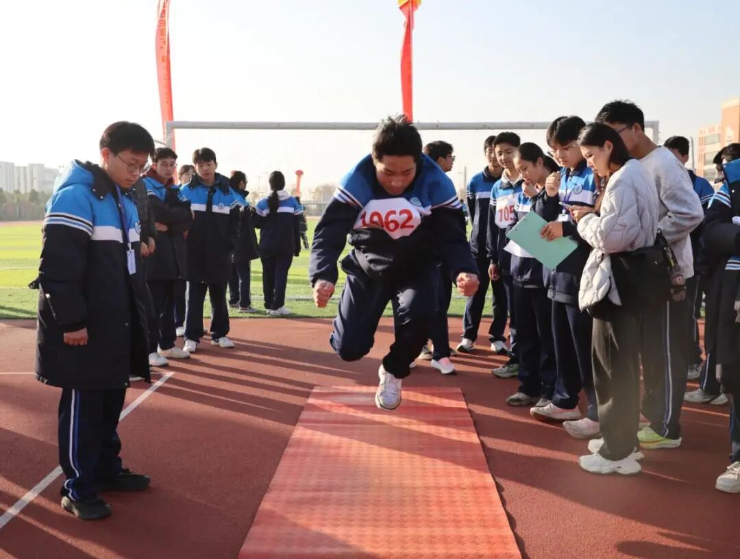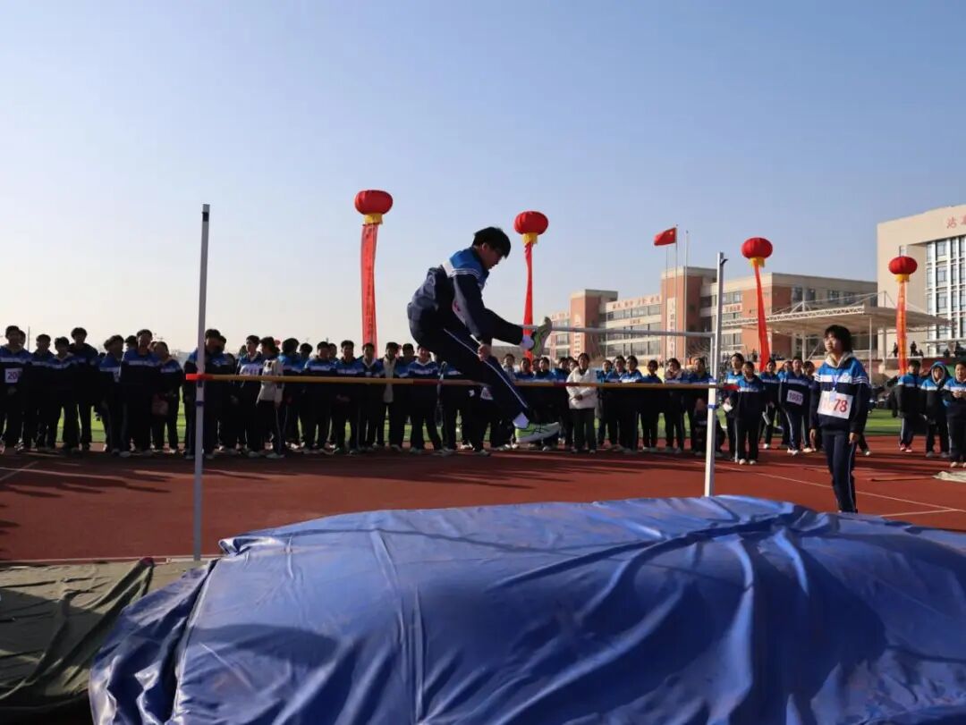比赛现场精彩纷呈、高潮迭起。跑道上,100米短跑选手们如离弦之箭般疾驰,耳畔是呼啸的风声与师生们震耳欲聋的呐喊助威;中长跑赛道上,运动员们咬紧牙关、耐力比拼,每一步都凝聚着坚持与毅力;场地内,跳高选手助跑、起跳、腾空,身姿轻盈如燕,向着更高高度发起冲击,跳远健儿则蓄力迸发,留下奋力一跃的印记,铅球与实心球项目中,选手们凝神聚力,将力量凝聚于臂膀,划出一道道有力的弧线。4×100米接力赛更是点燃全场激情,接力棒在队员手中稳稳传递,默契配合中展现着团队协作的力量,每一次交接都牵动着全场观众的心弦。