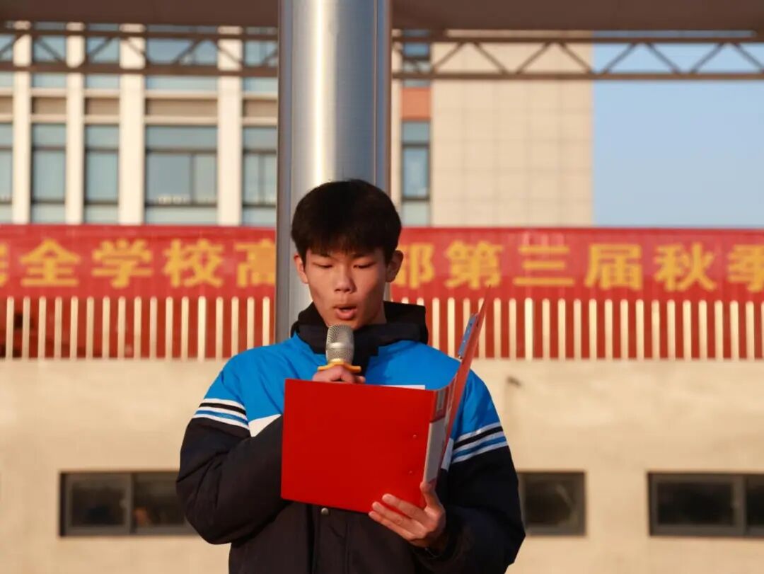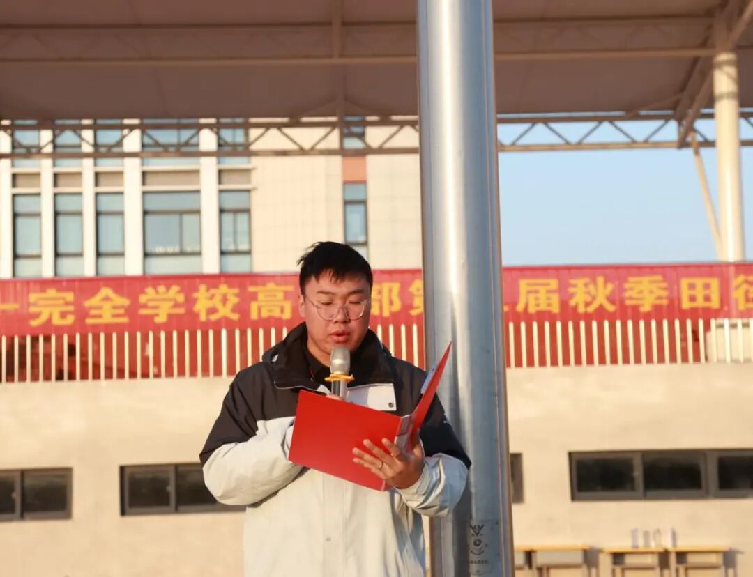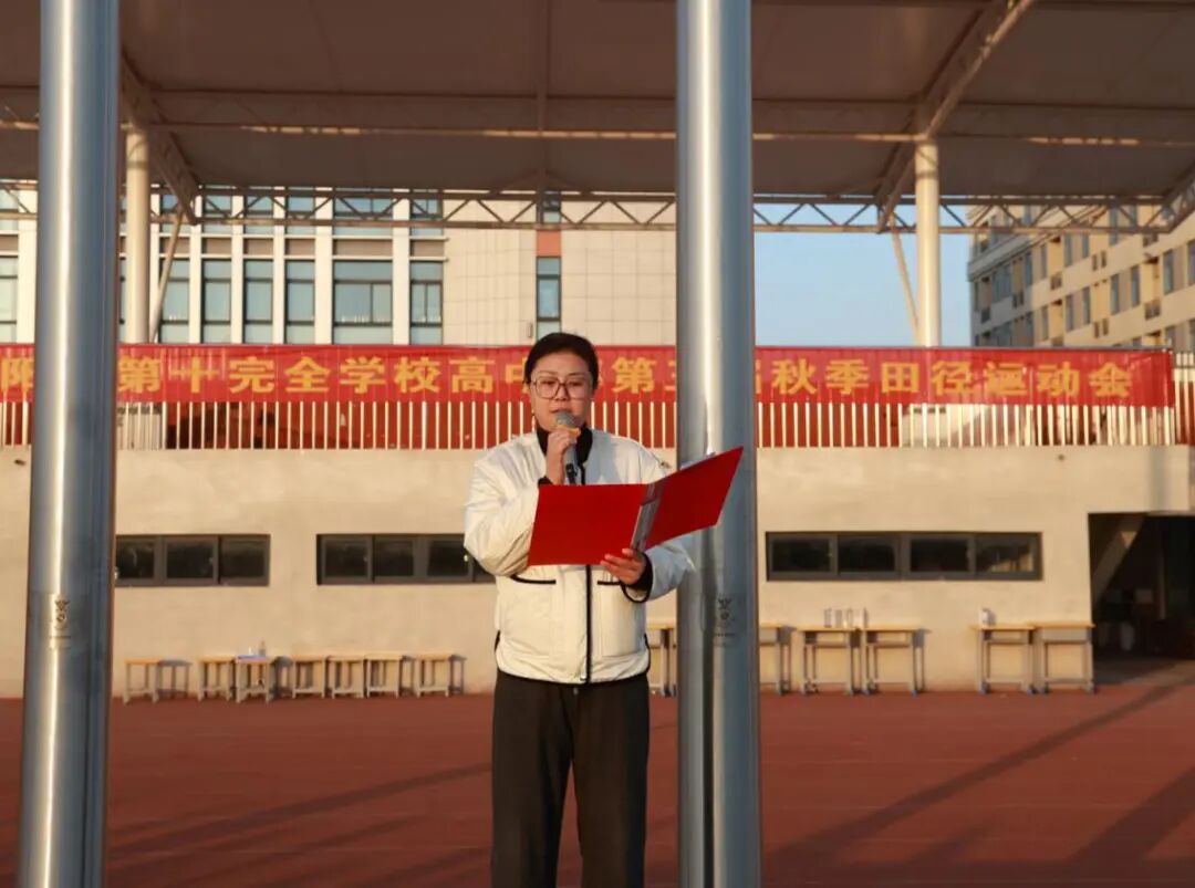 随后,武捷副校长宣布“南阳市第十完全学校高中部2025年秋期田径运动会开幕”。本次运动会设置了丰富的田径项目。其中男子组涵盖100米、1500米、跳高、铅球、4×100米接力等11个单项及1个集体项目,女子组设置100米、800米、三级跳远、实心球等对应的11个单项及1个集体项目,全面展现学子的速度、力量与协作能力。
