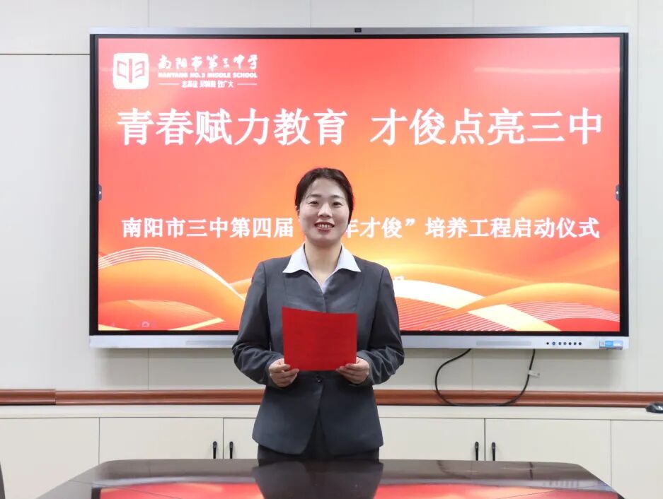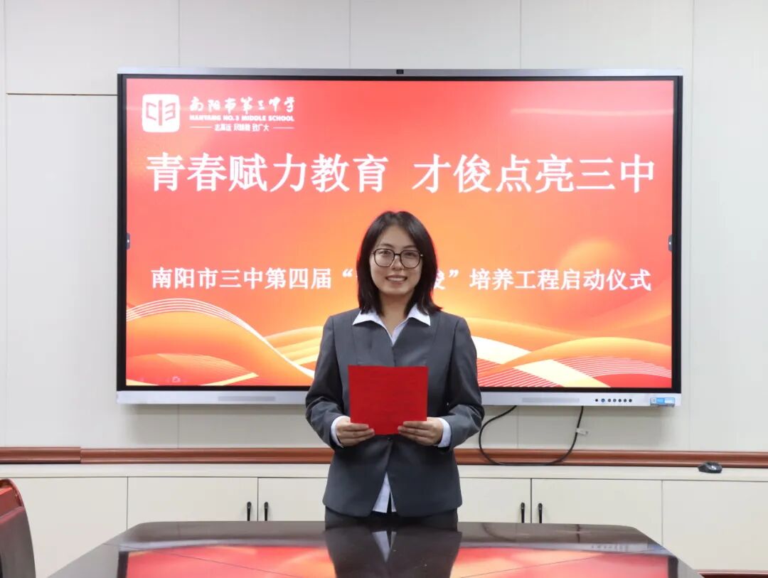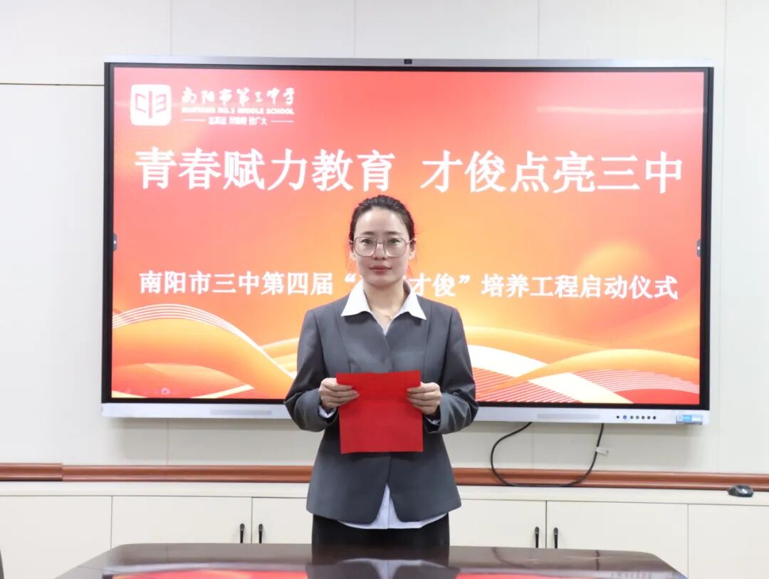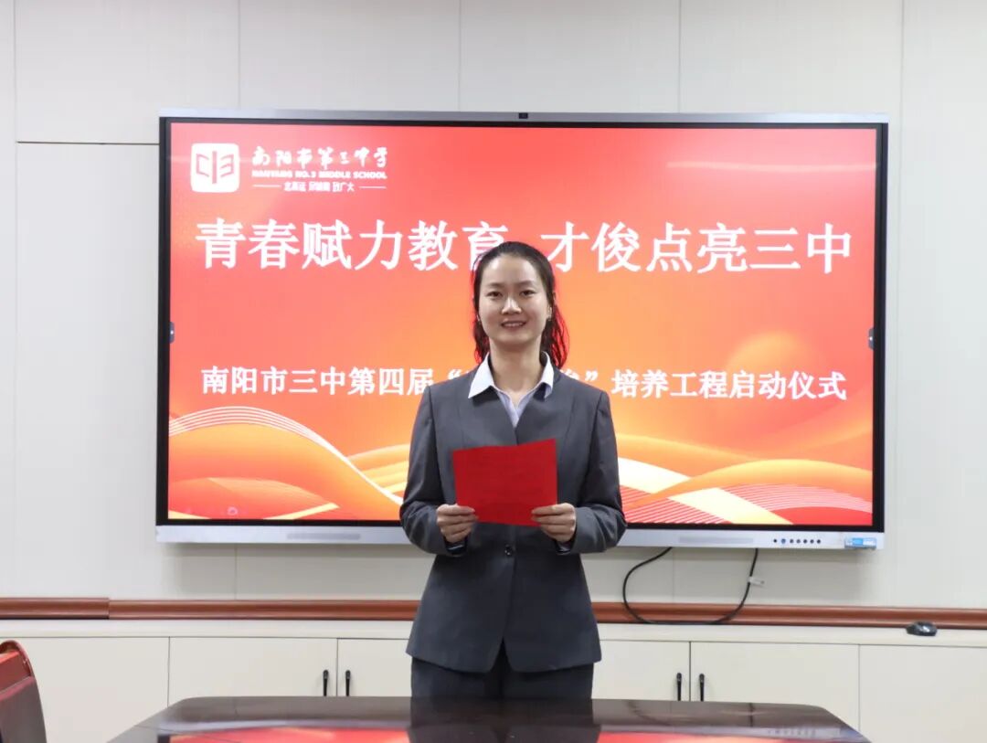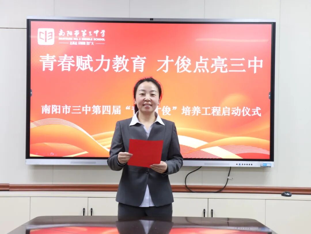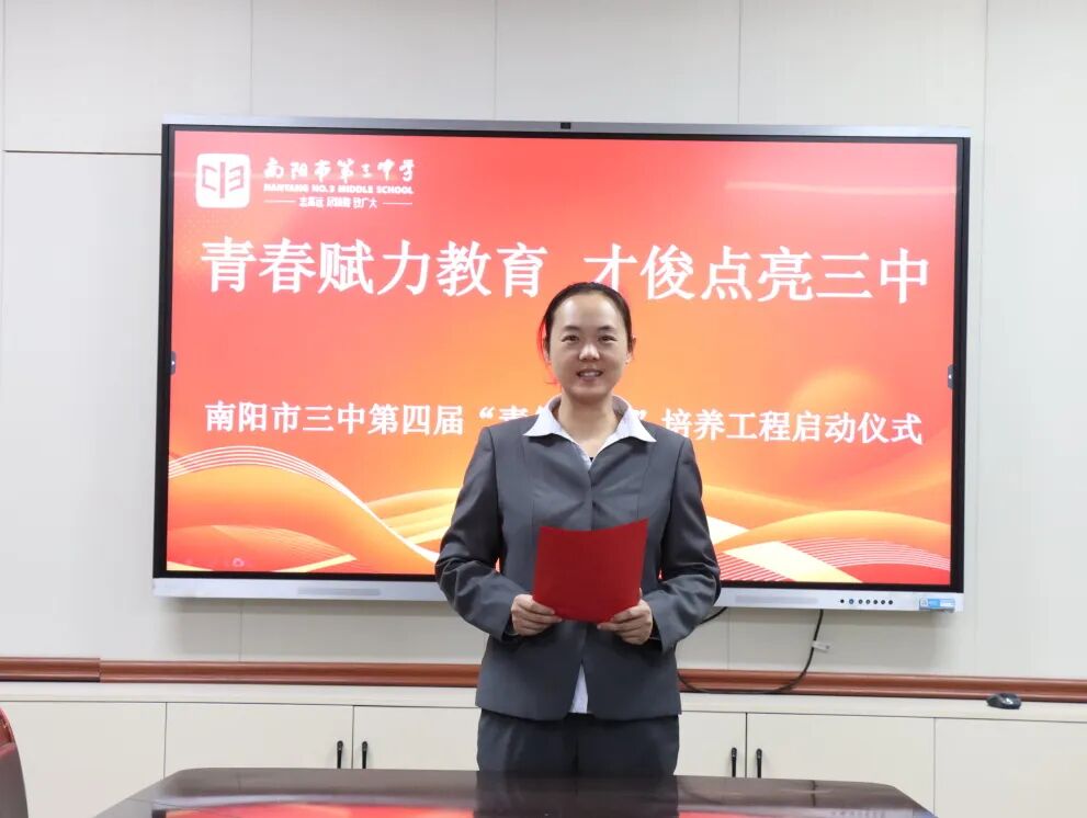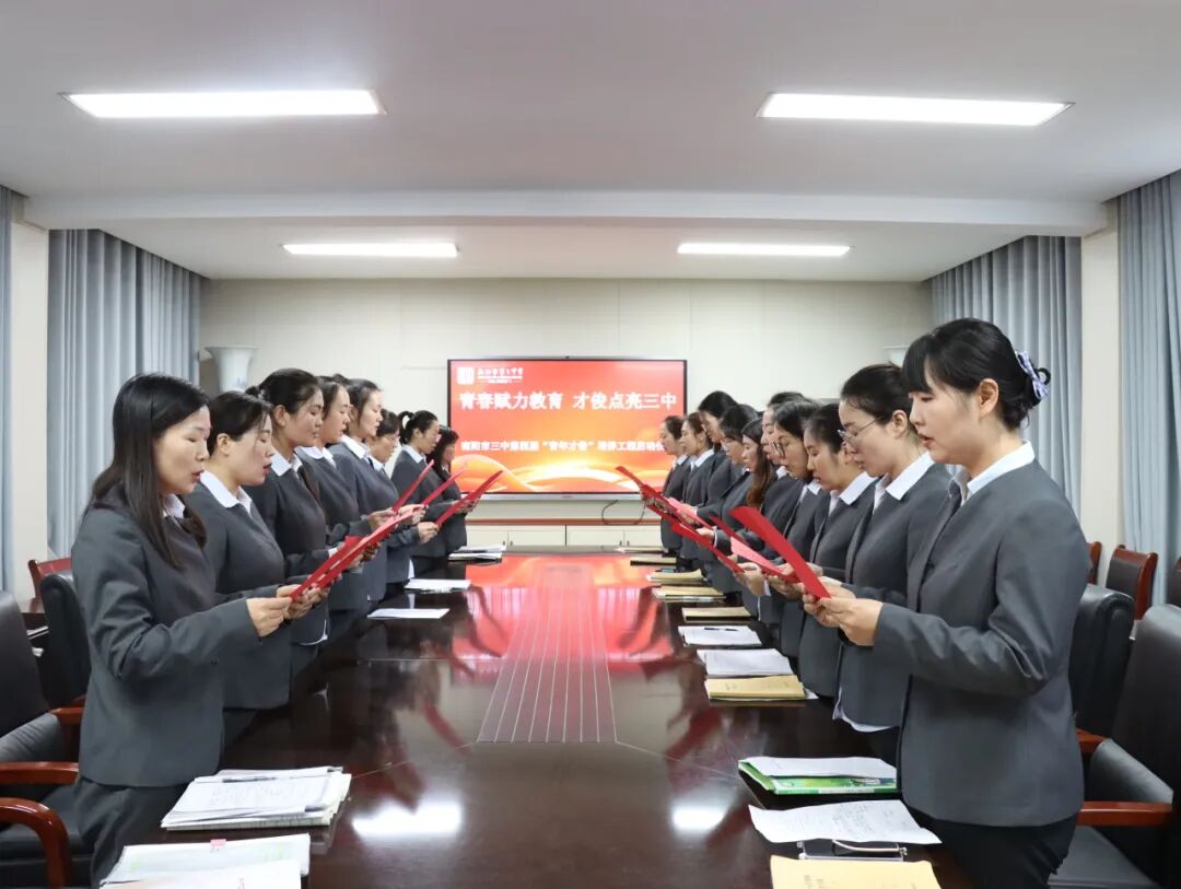 青春逢盛世,奋斗正当时。为夯实教师队伍建设根基,激活青年教师成长活力,助力青年教师快速成长为教学骨干与育人先锋。2025年11月28日下午,南阳市第三中学隆重举行了“青春赋力教育 才俊点亮三中”第四届“青年才俊”培养工程启动仪式。学校领导与20位青年教师齐聚于此,共赴使命,为学校教育高质量发展注入蓬勃动能。南阳市三中校长刘俊峰、副校长白中岐、副校长刁春瑜、年级主任曾国燕出席此次活动,由科训室主任康清主持。