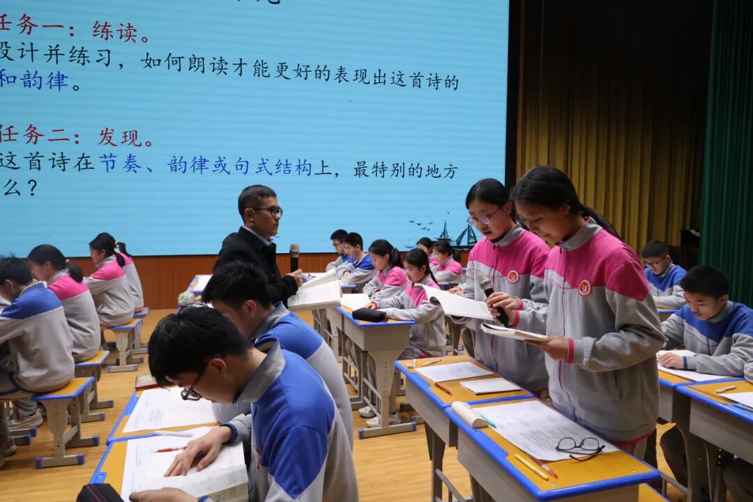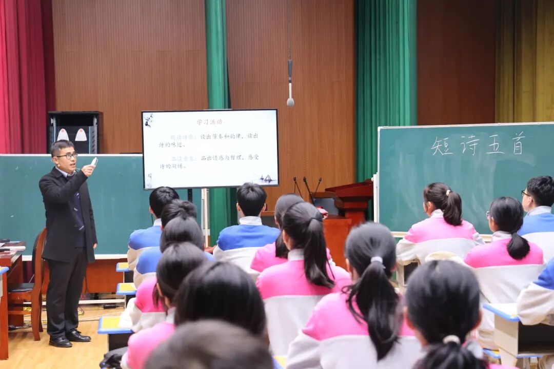 朱晓阳老师讲授《往事依依》,开篇以四季诗词铺展诗意氛围,让课堂浸润文学气息。围绕目标设三层任务:探究选材逻辑,在文本辨析中激活思维;赏析第五段时,老师动情示范《江城子》朗读,以饱满情感拉满沉浸感,助学生体会朗读传情与授课启蒙意义;以写建议信搭建实践场景,营造互助分享氛围,梳理语文学习方法。课后仿写作业延续文学温度,让学生既悟文章精髓,又得实用经验。