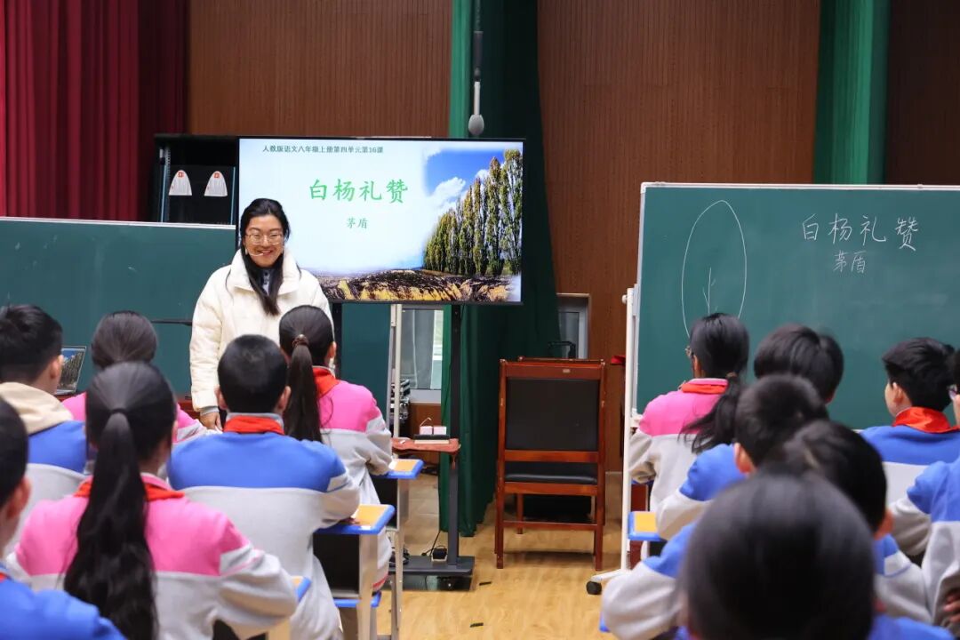 郝灵美老师为大家带来《白杨礼赞》阅读课,授课教师紧扣 “不平凡” 主线巧设环节,引领学生层层深入解锁文本魅力。课堂上,学生先细读文本提炼白杨树的外形与精神特质,再结合抗战背景、参与分角色递进式反问朗读,洞悉其象征北方军民与民族精神的深层内涵;系统拆解象征手法技巧,辅以茅盾题白杨诗深化认知,课后布置象征主题写作,实现读写闭环。