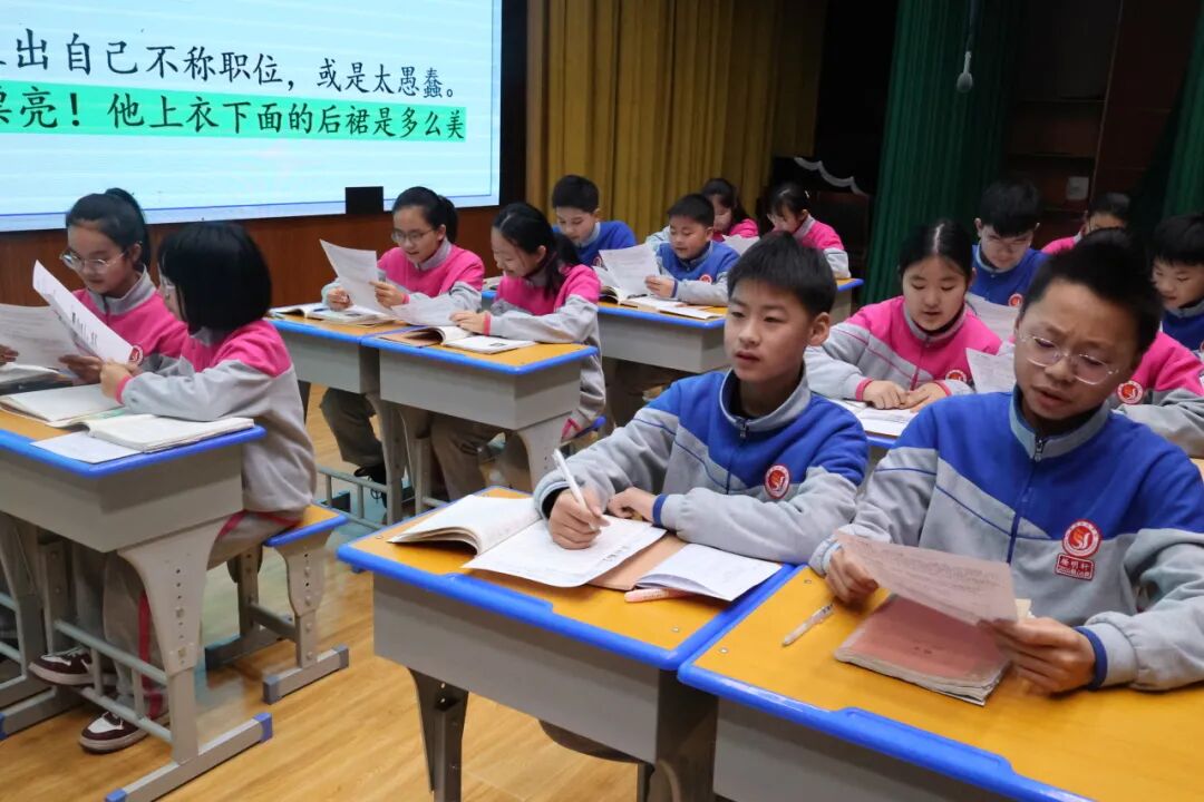 在南阳市实验学校大报告厅的舞台上,学子们的课堂表现尽显优良学风。讨论环节,他们分工明确、思维碰撞,或深挖《背影》中 “攀”“缩” 等动词的情感重量,或辩论《皇帝的新装》里真相与利益的抉择,或探究《白杨礼赞》象征手法的表达逻辑;回答问题时,他们自信大方、见解独到,既能精准回扣文本,又能结合生活实际拓展感悟。从专注倾听的状态到踊跃发言的热情,从协作探究的默契到独立思辨的深度,实验学子全方位展现了乐学善思、笃行求真的精神风貌。