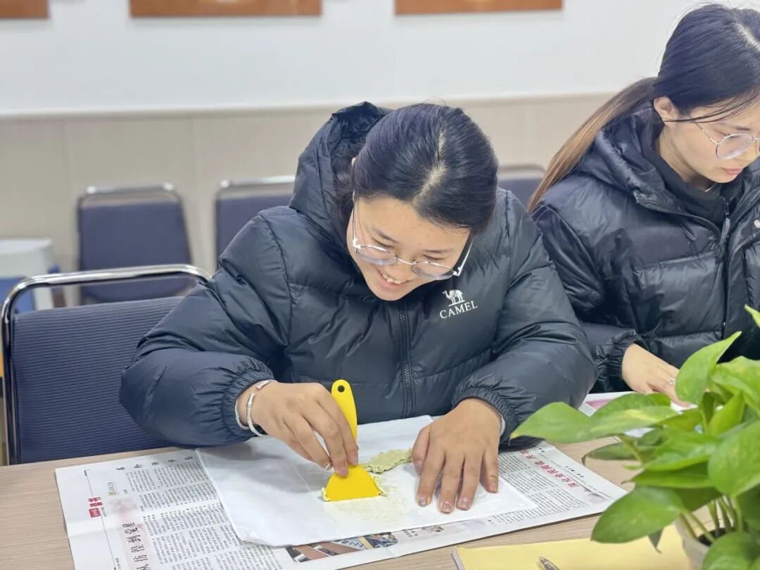 整场分享会中,李亚欣书记专注聆听、不时与教师们交流探讨,在体验环节更是饶有兴致地参与实操,感受非遗工艺乐趣。她对两位教师的优异研修成绩表示祝贺,高度肯定了她们毫无保留的经验传递与精心组织的实践体验,指出此次二次培训实现了 “一人参训、全员受益” 的良好效果,希望全体音美教师将所学技艺与教育理念转化为课堂教学实践,在日常教学中深耕非遗文化传承、着力培育学生的审美感知与艺术素养,让美育真正浸润学生心灵。