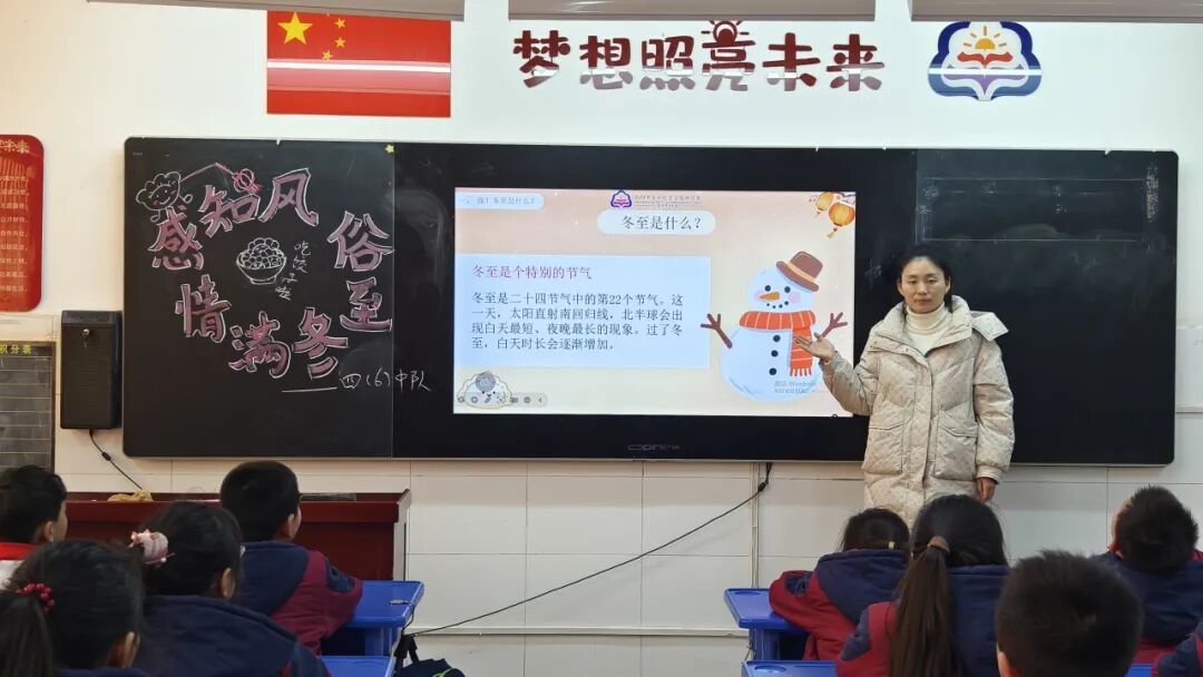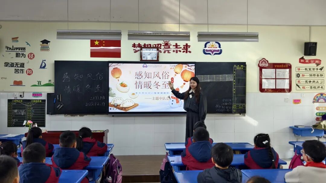 活动伊始,各班级通过生动有趣的主题班会,开启了冬至文化探索之旅。班主任老师借助图片、动画、故事等形式,向同学们详细讲解了冬至的由来、“冬至大如年”的民俗内涵,以及南北方“吃饺子”“吃汤圆”的不同习俗。