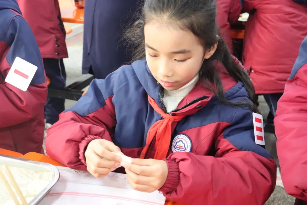活动现场热闹非凡,充满了欢声笑语。同学们洗净小手,围坐在一起,跟着老师认真学习包饺子的步骤:取皮、放馅、捏边……虽然动作略显笨拙,有的饺子“露了馅”,有的形状奇特,但大家热情高涨、乐在其中。