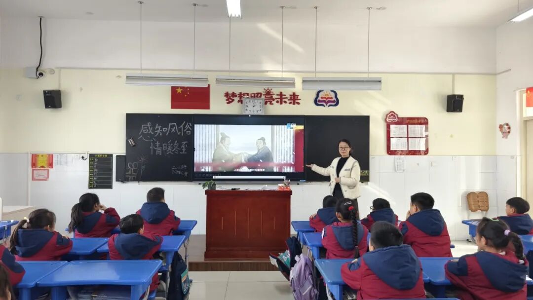 “冬至为什么要吃饺子呀?”“古代的人们是怎么过冬至的?”课堂上,同学们积极举手、踊跃提问,在互动交流中了解了“冬至不端饺子碗,冻掉耳朵没人管”的趣味传说,更从医圣张仲景与“祛寒娇耳汤”的故事中深刻感受到了传统节日中蕴含的文化智慧与人文关怀。