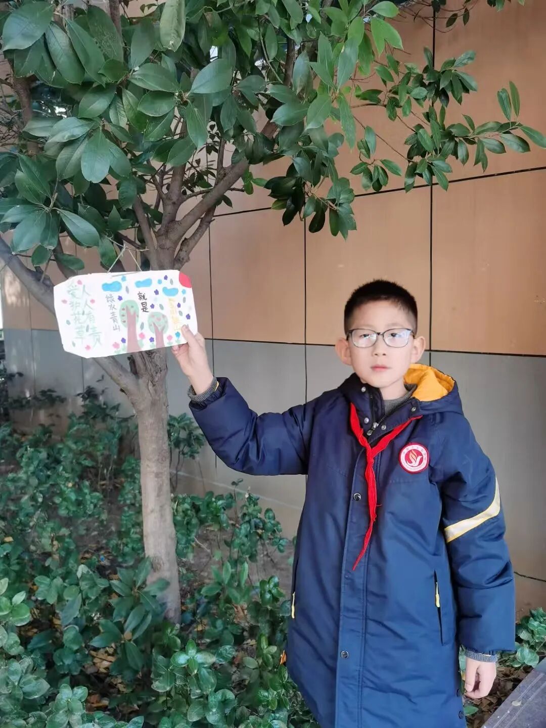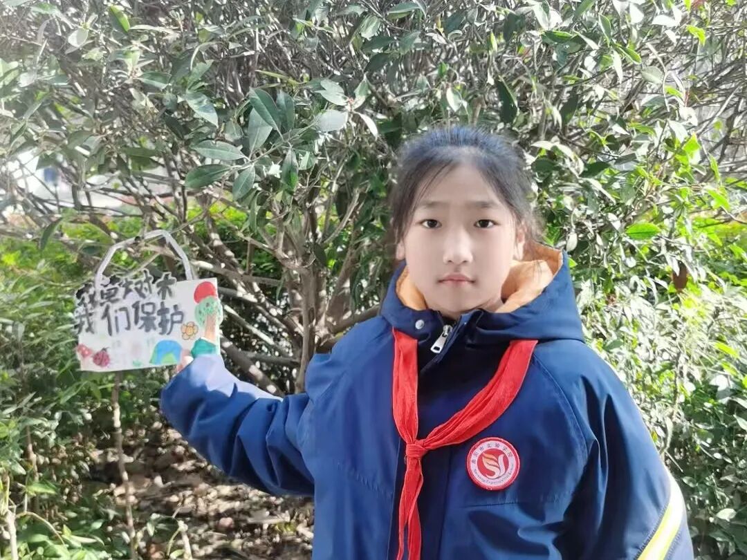 “护绿始于心 践诺在于行”,孩子们利用课余时间为心爱的树木量身打造护树牌。他们巧用废旧纸板、木片等环保材料,写下温情宣传语,创意十足又饱含诚意。孩子们小心翼翼地将护树牌挂在枝干上,小小的牌子不仅是对树木的承诺,更是生态文明教育的生动实践,让“爱护自然、守护绿色”的理念深入人心。