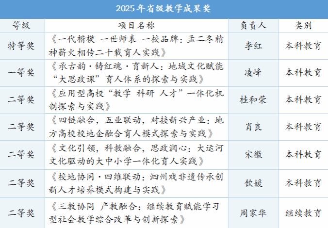 近日,安徽省教育厅公示了2025年省级教学成果奖评选结果,我校获得特等奖1项、一等奖1项、二等奖5项,获奖数量与质量均实现显著提升。