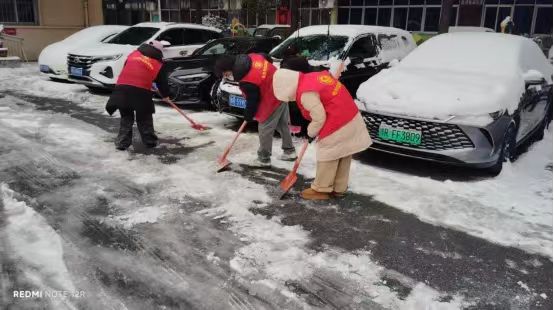 一场瑞雪过后,社区道路、楼道门口积满积雪,结冰路面给居民出行带来极大安全隐患,尤其是老人和孩子,出门稍不留意就可能滑倒。“网格长,楼下路太滑了,能不能帮忙清理一下?”网格群里的消息刚发出,仲景社区就迅速响应,快速集结社区工作人员、党员志愿者、热心居民和大学生群体。大家身着红马甲,手持铁锹、雪铲,分工明确、干劲十足:年轻力壮的小伙子们奋力铲除主干道的硬冰,阿姨们细心清理单元楼门口和坡道的积雪,还有志愿者专门在路边搀扶过往老人。“大爷,慢点走,这路刚扫干净,放心走!”寒风中,暖心的提醒声此起彼伏。居民们看在眼里、热在心里,纷纷回家拿来工具加入队伍,原本冷清的雪天街道变得热闹又温暖。
