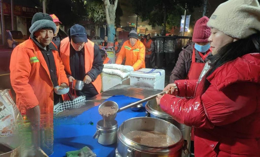 在城区,关爱行动覆盖更多群体。安居社区党员志愿者身着红马甲,不仅在党群服务中心设点赠粥,更针对高龄老人、残疾人等行动不便群体开展“上门赠粥”服务,同步普及养老保障、医保社保等政策知识。刘兵胡辣汤近30家门店同步开放免费施粥点,从7点至9点为市民送上热粥,让“腊八施粥”从特定群体关怀延伸为全民共享的暖意,践行“邻里相亲、守望相助”的城市精神。十二载坚守的“腊八施粥传福报”活动,今年更凝聚起十余家爱心企业力量,同步开展助农行动,采购新鲜蔬菜赠予环卫工人,让善意既暖人心又惠乡土。