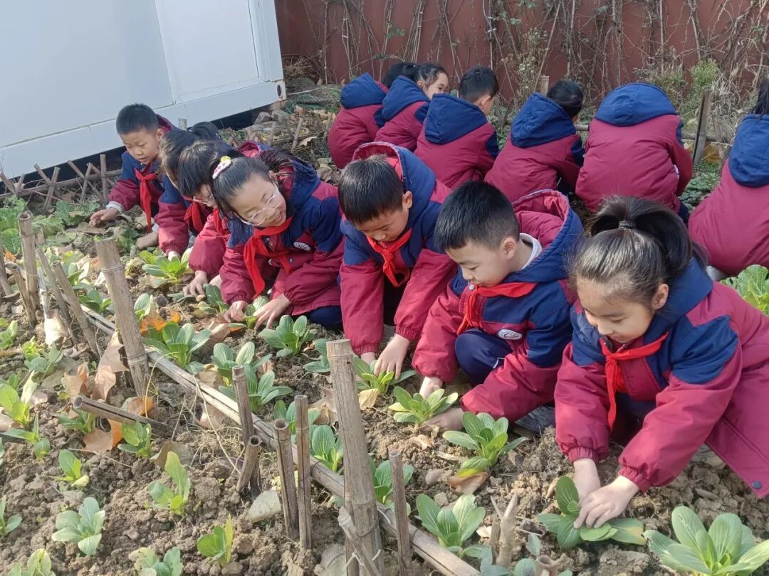 孩子们在老师的带领下来到各班的责任田,纷纷弯腰俯身,一场热闹的冬日采收便正式开启了。