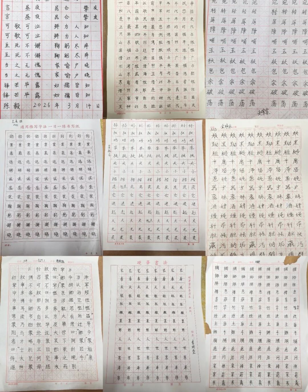 课后,书写练习更是成为三中学生的日常必修课。学生们伏案临帖、潜心描摹,将每一次书写都当作一次修行,在反复打磨中锤炼耐心、磨炼意志。从单个汉字的规范书写,到通篇作业的整洁美观,七年级全体学生以认真严谨的态度对待每一个笔画、每一个汉字,让“提笔即练字,写字必工整”成为深入心底的自觉习惯。在日复一日的练习中,学生们不仅夯实了书写基础,更在一撇一捺、横平竖直中涵养了严谨细致、脚踏实地的求学品格,让良好的书写习惯成为学业发展的坚实支撑。